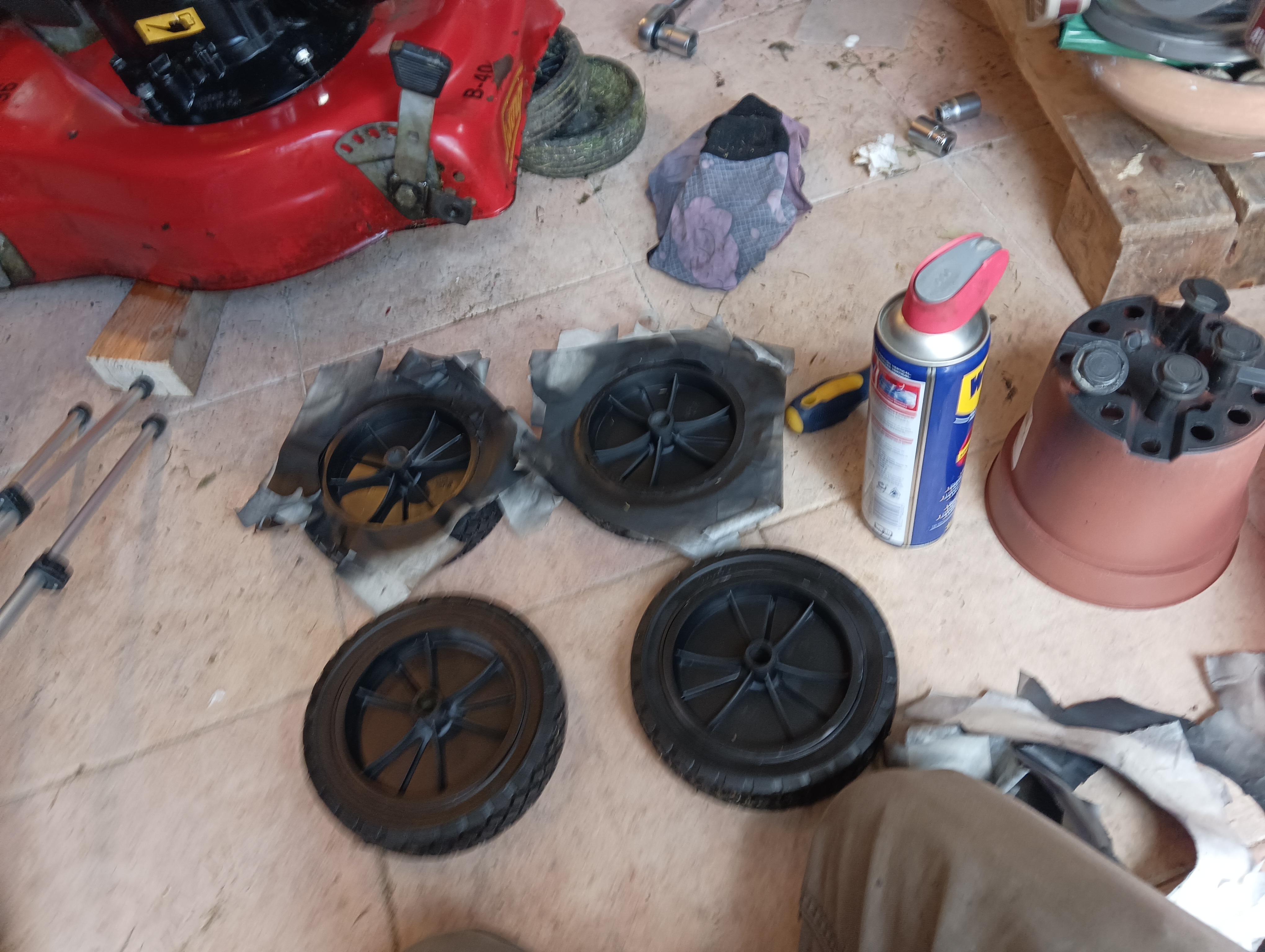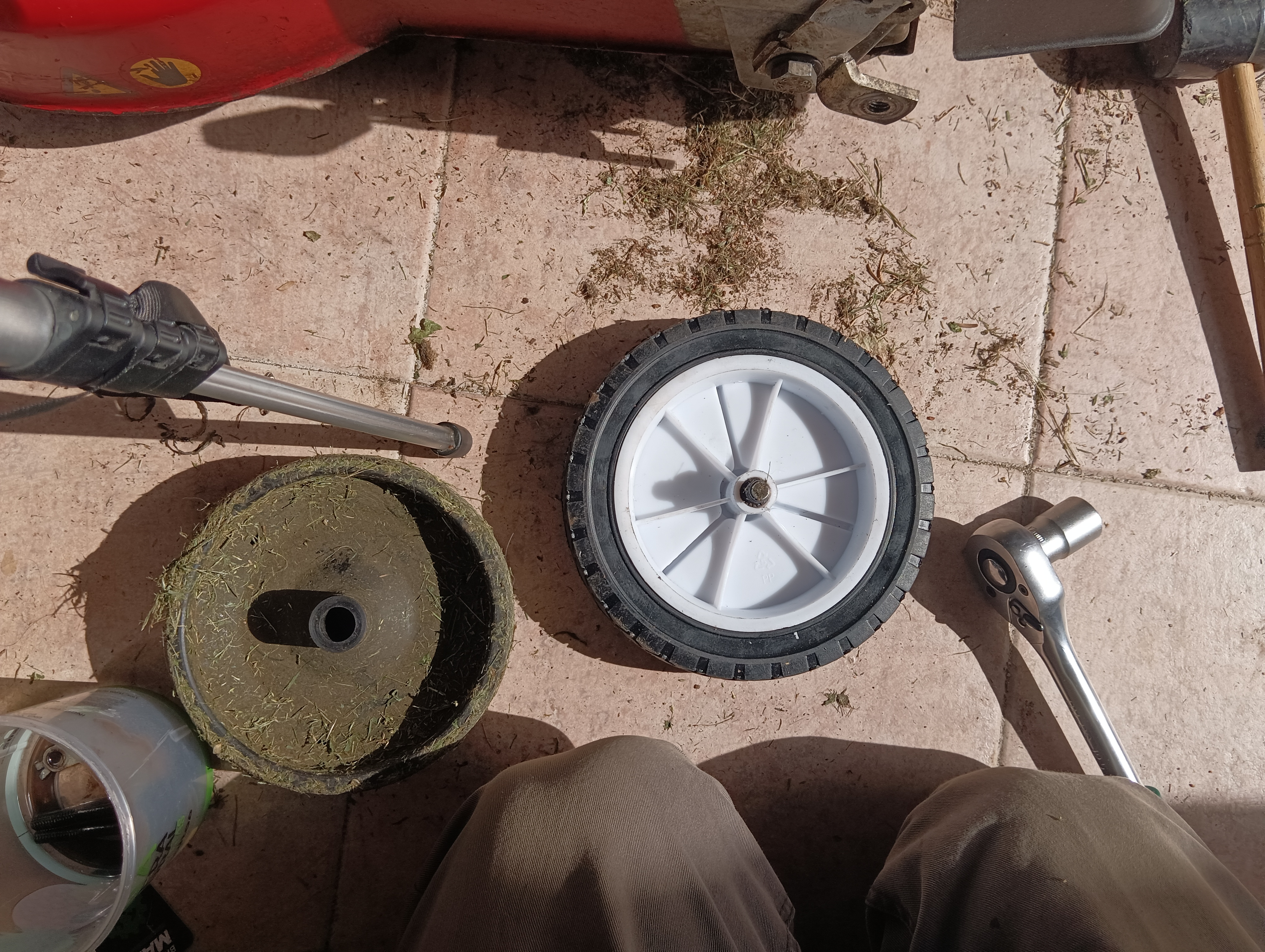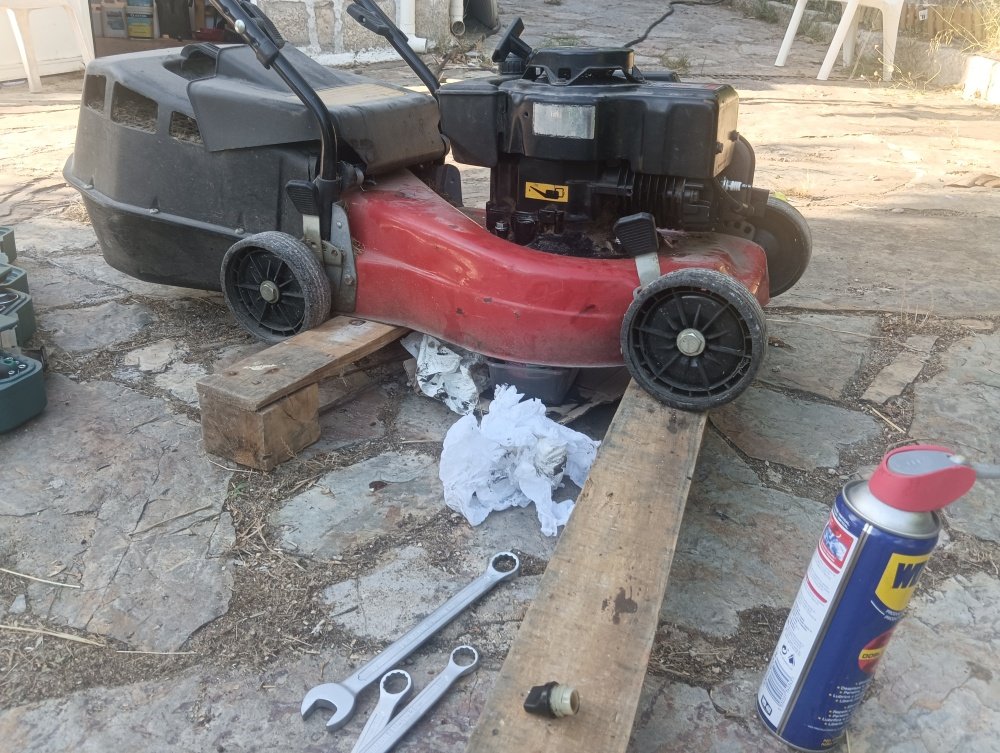 Hemos limpiado exterior e interiormente, deposito, carburador y tornillería, cambiado filtro de aire, varias veces el aceite y puesto ruedas nuevas(nos tocó adaptar las que compramos) hemos tratado los plásticos y arreglados grietas y rotos en la tapa. La máquina actualmente ya funciona, corta impresionante el cesped, pero aún necesita carburarse mejor, arranca al quinto intento o sexto y a los 20 minutos se suele parar. Este proyecto nos ha enseñado mucho más de lo que pensábamos y como ganemos nos vamos de cabeza a Wallapop a por la mejor moto que cueste 500 euros :) Os dejo un video resumen.
