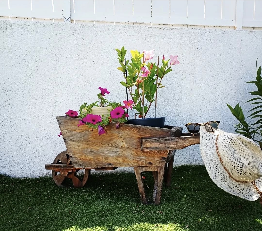 Enecontramos una carrito decorativo al lado de un container de basura, muy viejo y deteriorado por el efectos del sol y el agua y no lo pensé ni un momento, sabía que podí darle una nueva segunda vida. Lijé, limpié muy bien y barnicé con aceite de linaza con color. Increíble el resultado, no?