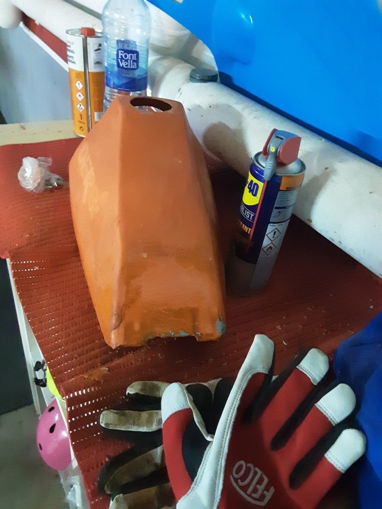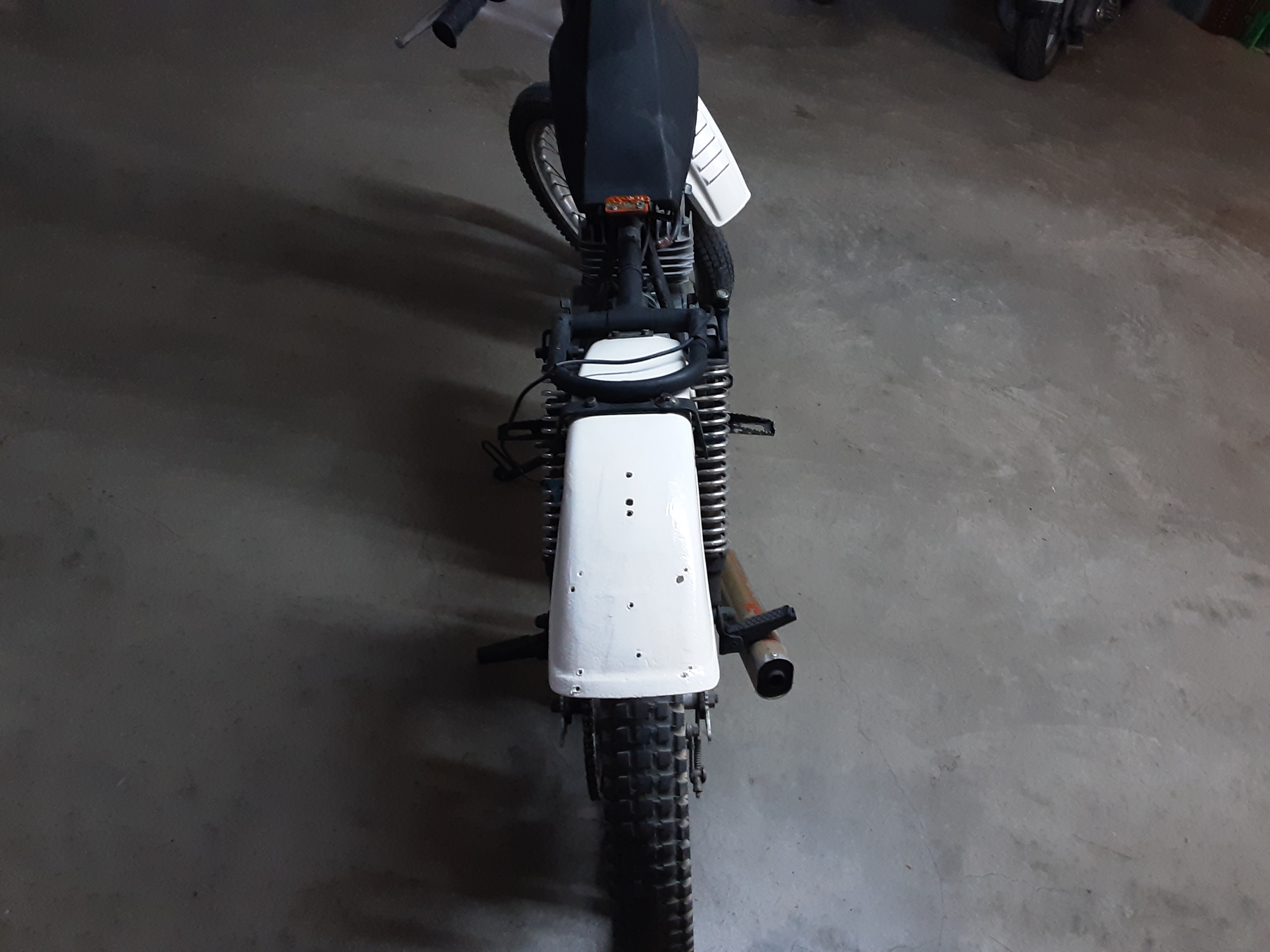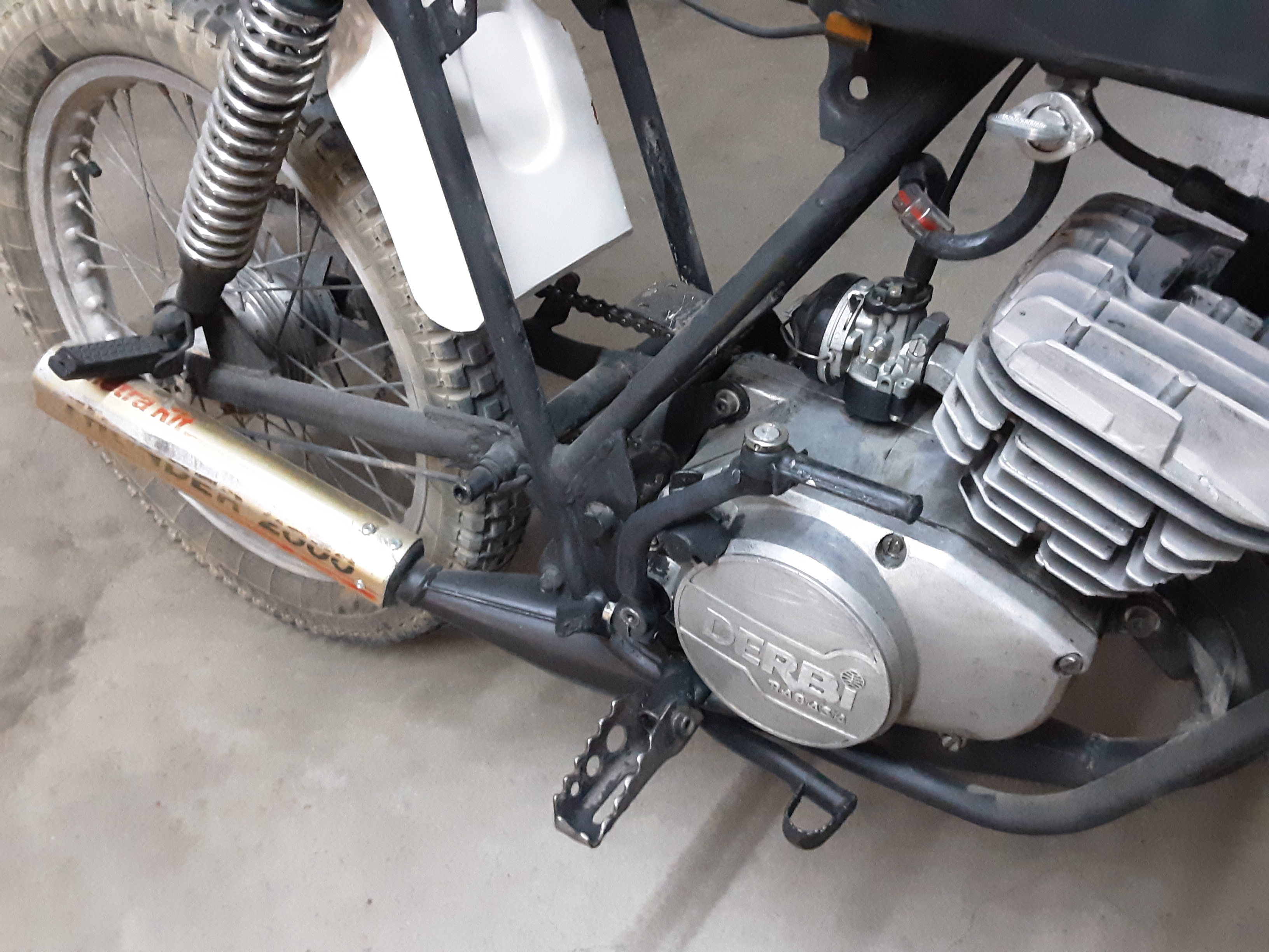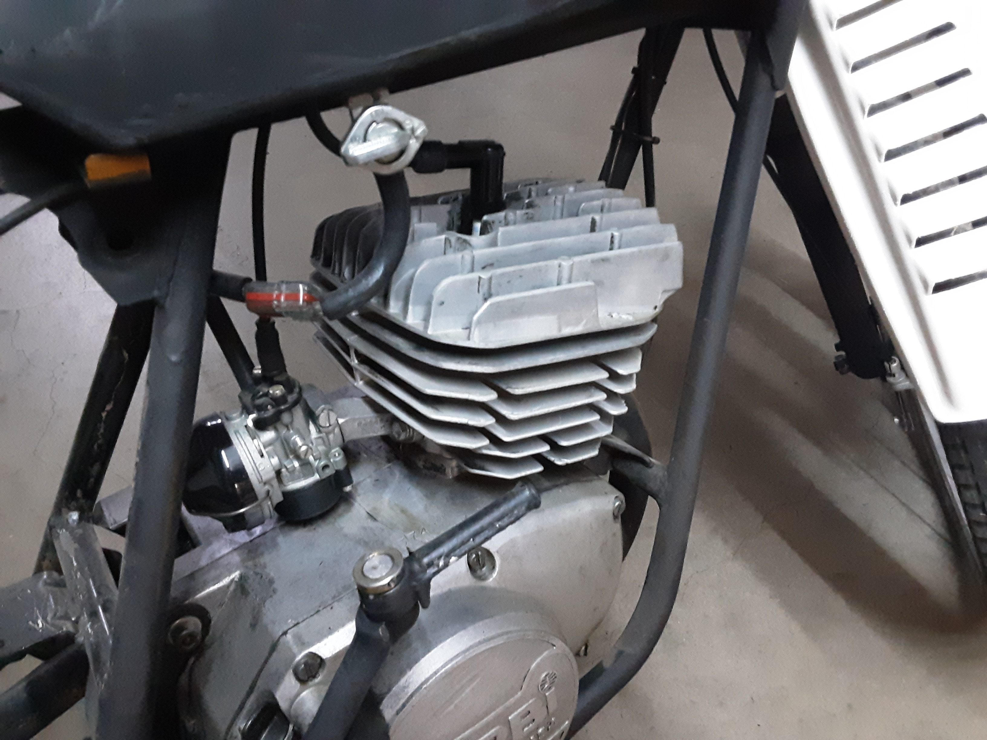 Tras días y meses de trabajo, la pusimos en orden: recableamos todo el circuito, le arenamos y reconstruimos el motor y el cambio, le instalamos una pata de cabra nueva y la limpiamos a conciencia.