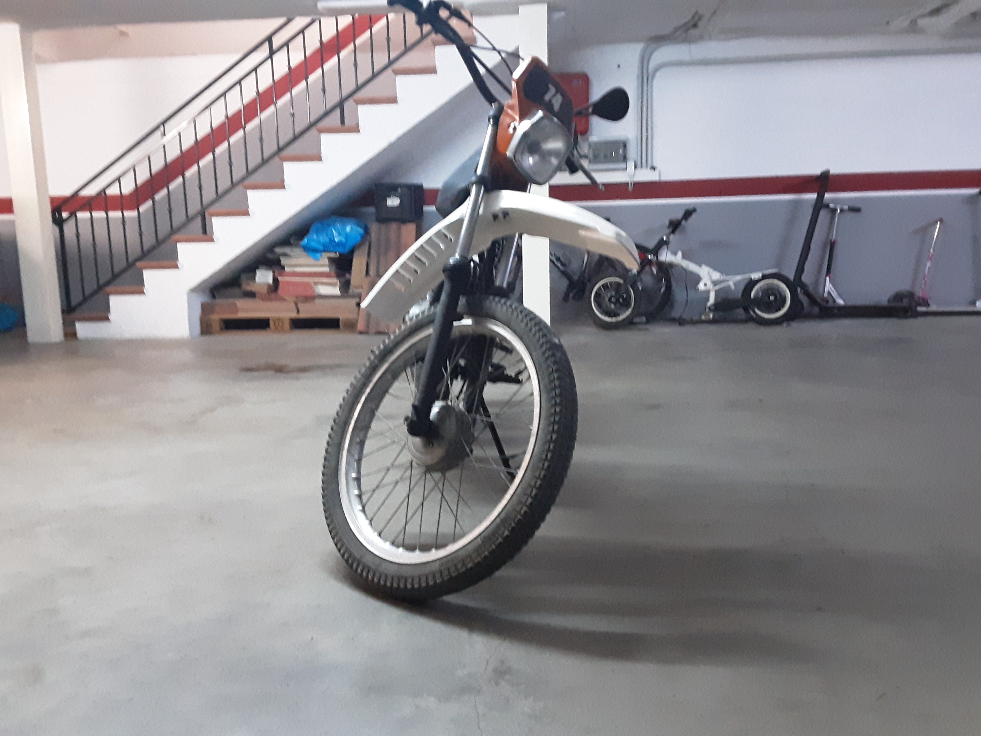 Esta moto la compró mi abuelo en 1980 para ir a trabajar, pues era una herramienta fácil de usar para acceder a la finca y desplazarse por el pueblo. Cuando se hizo mayor, la dejó en el desván de la caseta del campo, y allí se quedó durante más de 30 años.