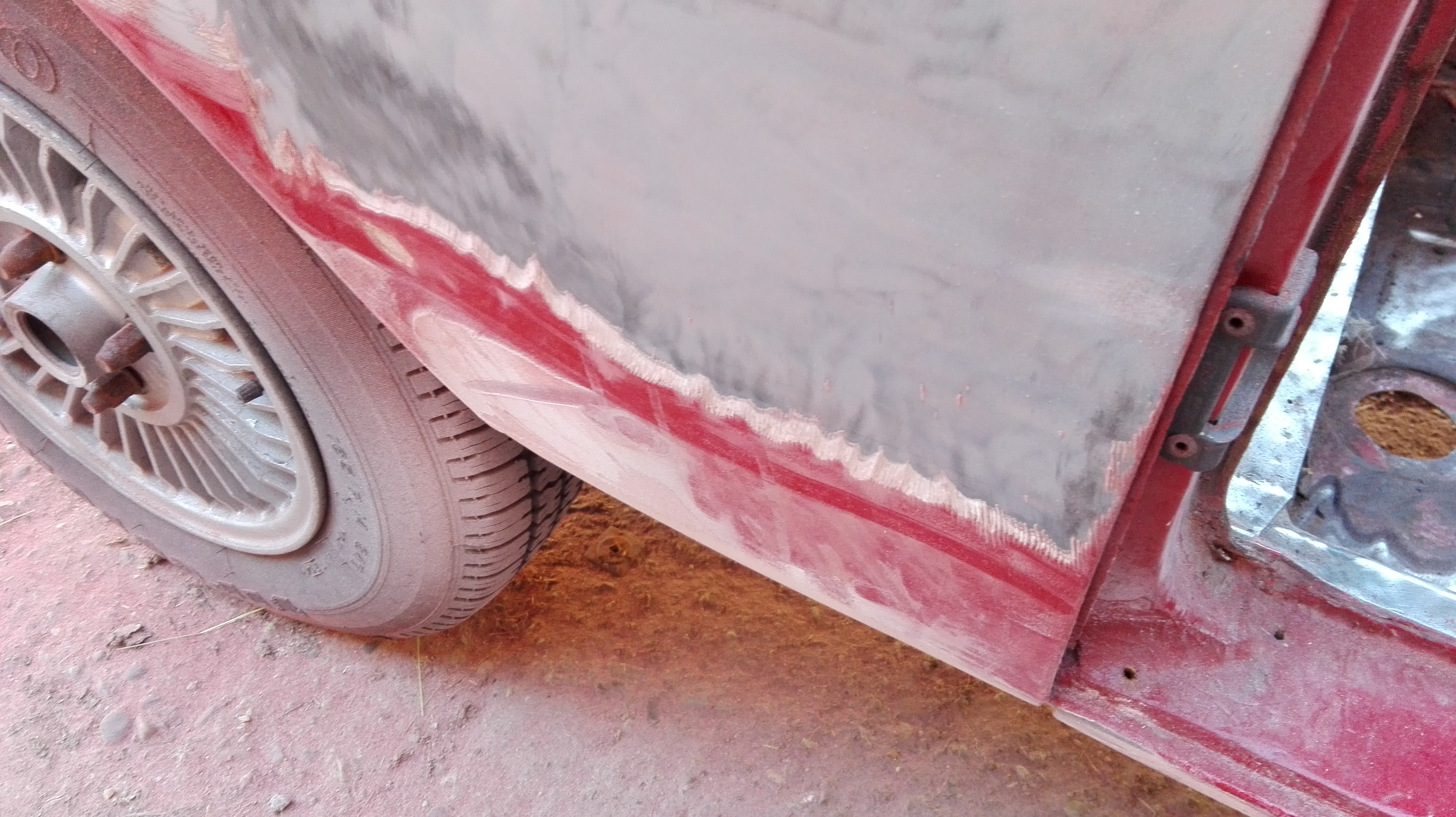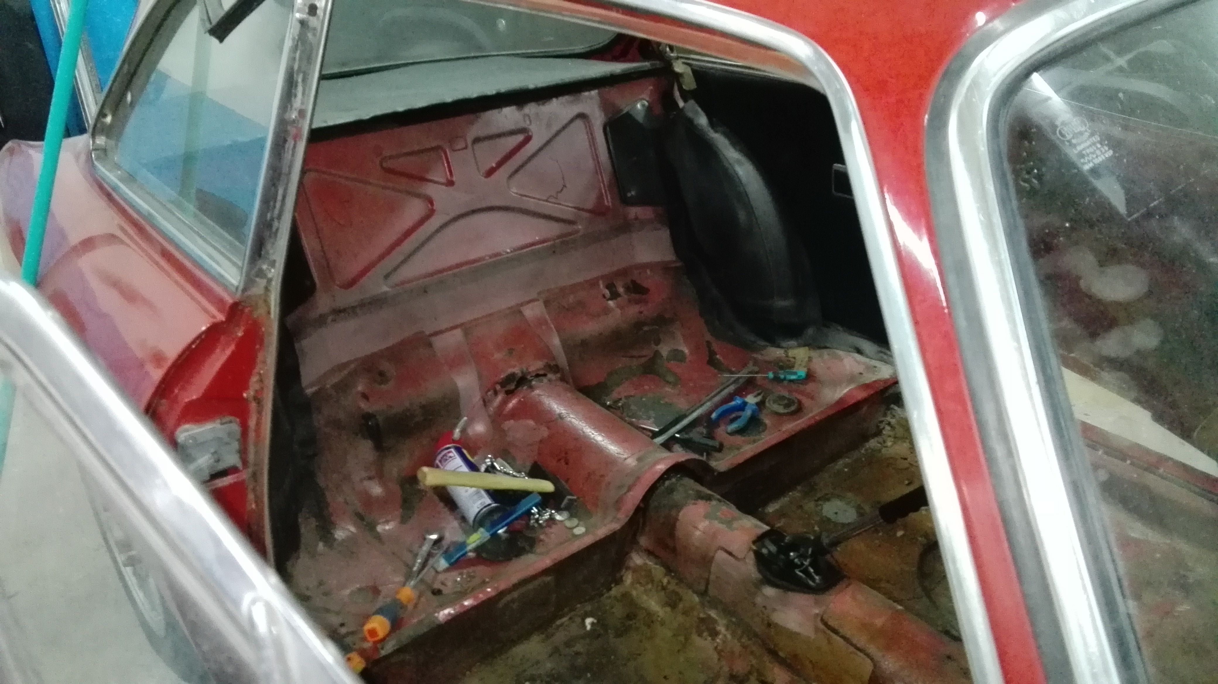 No sé cuánto tardé, pero lo peor no fué el tiempo, fué lo que encontré. Una obra de arte de masilla y óxido. Los 80 en según qué cosas y en chapuzas a coches como ponerle un techo solar que no pegaba NADA o usar masilla a saco.