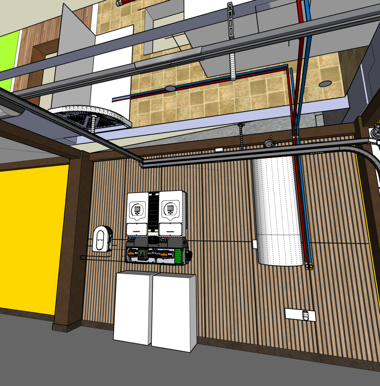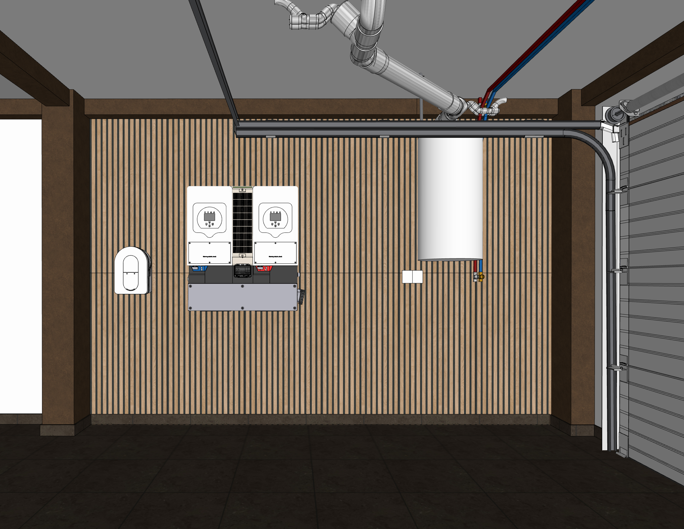Respecto a la instalación también contempla cargador de vehículo eléctrico y se preinstala en la pared un tubo para su conexión en el futuro. Si tengo ya todos los accesorios contemplados en el diagrama eléctrico de esta instalación, desde magnetotérmicos, diferenciales, MTS, protecciones, etc... esperando a ser montados para tener una instalación de cuadro de distribución con capacidad de manejar hasta 63A.