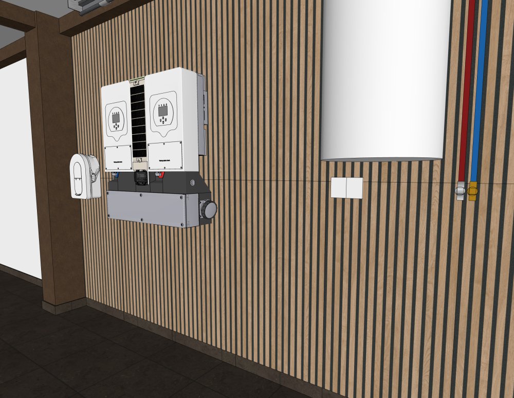 De hecho la colocación del termo eléctrico al lado de inversor, dejando los márgenes de seguridad normativos, se hace conveniente según la nueva instalación de fontanería y por eso se añade una toma de agua fría y caliente de la forma mas limpia posible.