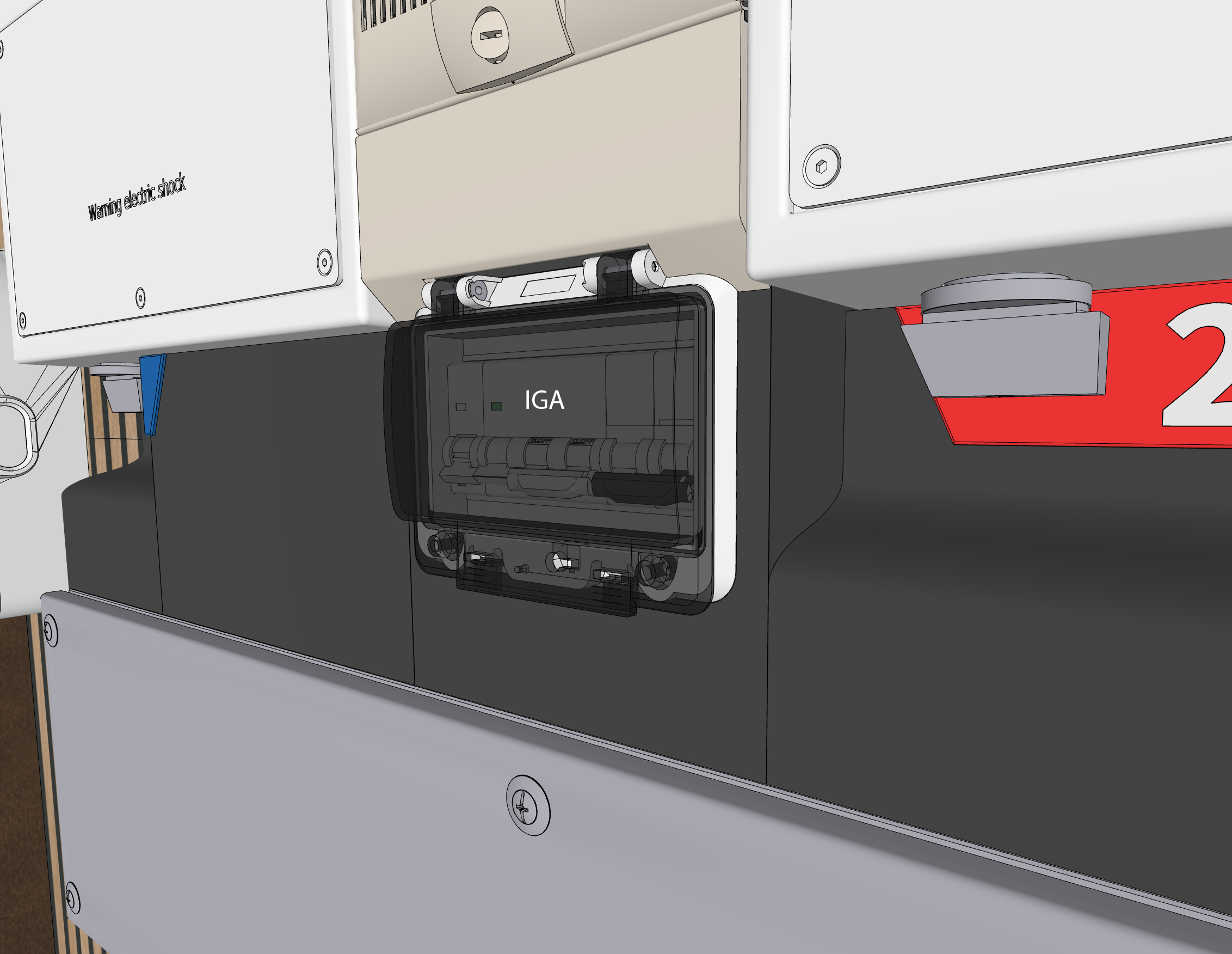 El Interruptor General Automático (IGA), elemento esencial obligatorio se ubicará en este cuadro, concretamente en la parte frontal. Para cumplir normas debe estar situado a una altura mínima del suelo, en una caja con certificaciones, de forma fija y con una manera accesible y próximo a alguno de los accesos principales o mas comunes entre otros detalles.