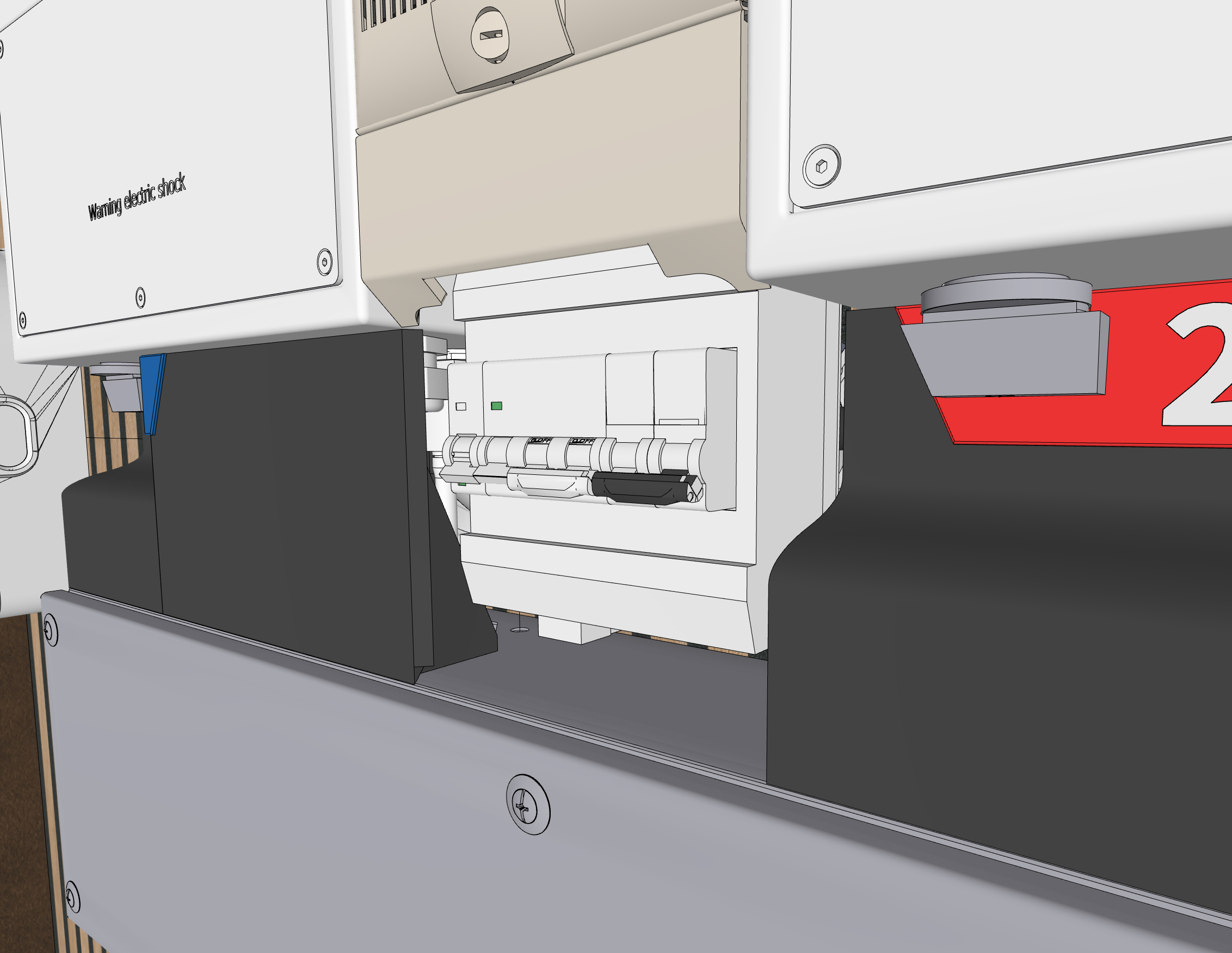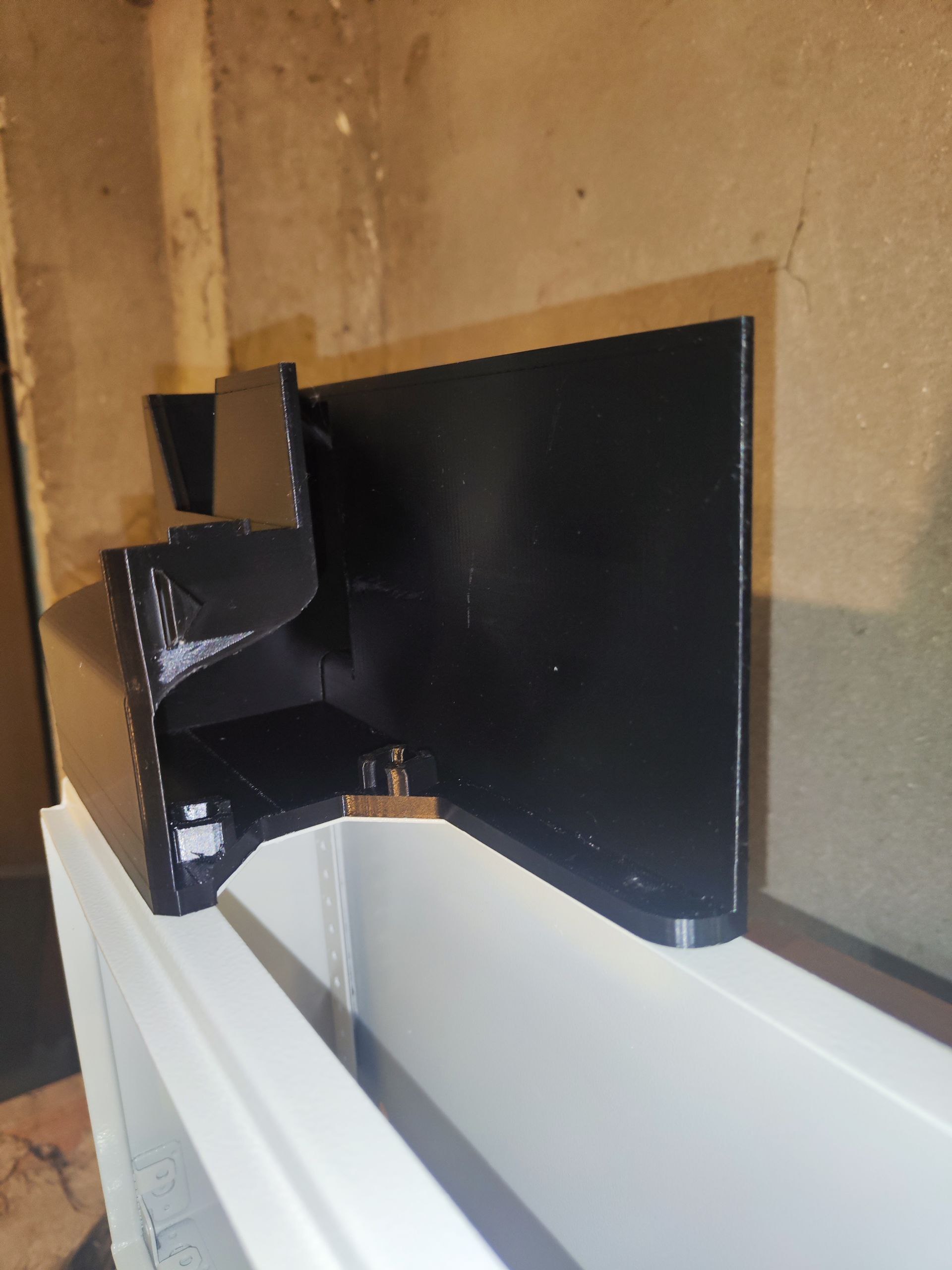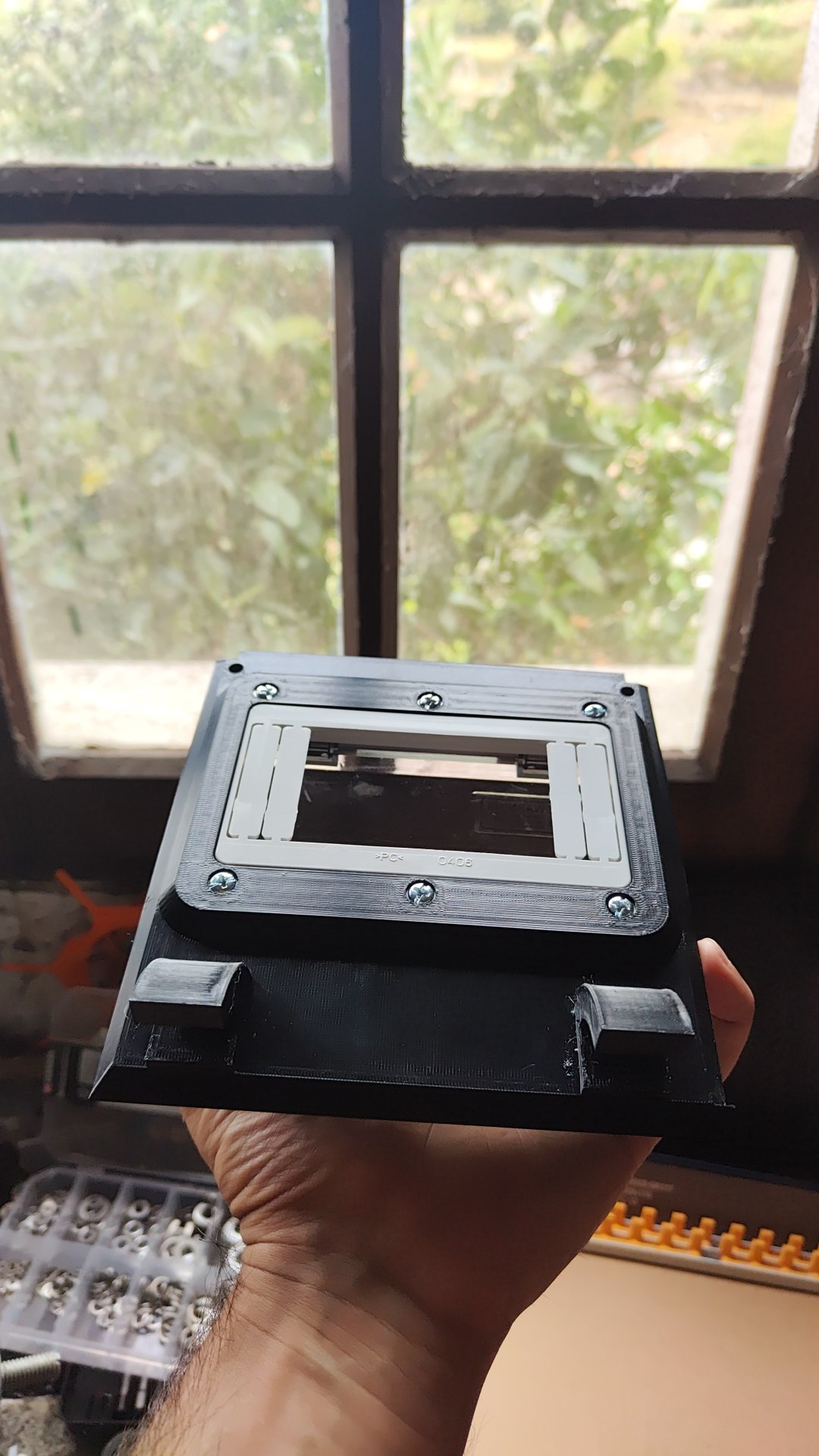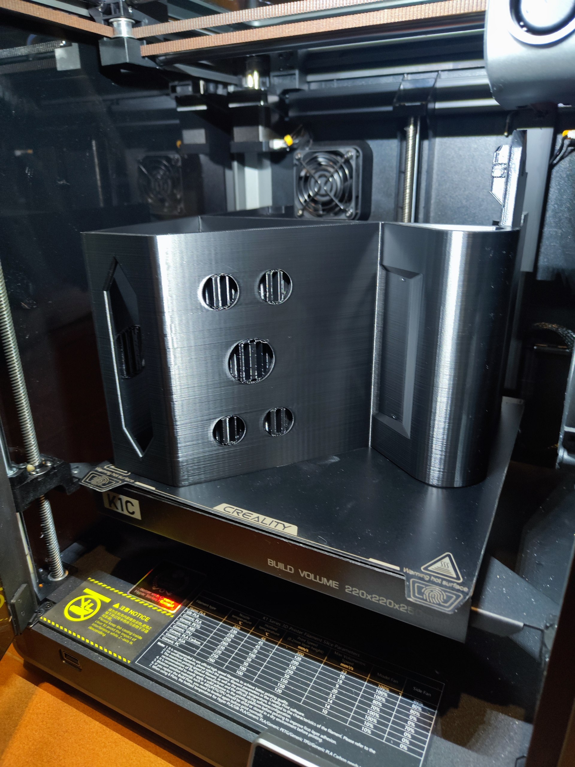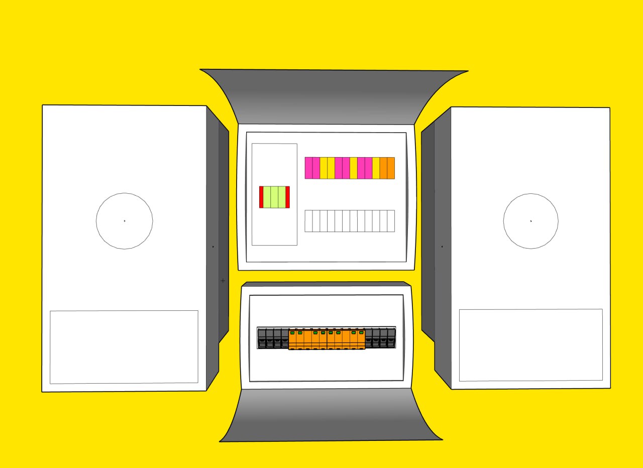 Por ejemplo mejorando las uniones de las piezas y definiéndolas mucho mas, añadí por ejemplo el cajoncito auxiliar blanco que podría guardar la "llave" que abre la rejilla frontal, perforaciones laterales de 22mm de diámetro para elementos adicionales como botones auxiliares o luces piloto, etc... También añadí una luz led en la parte superior para indicar un estado general o con ideas de domotización a posteriori.