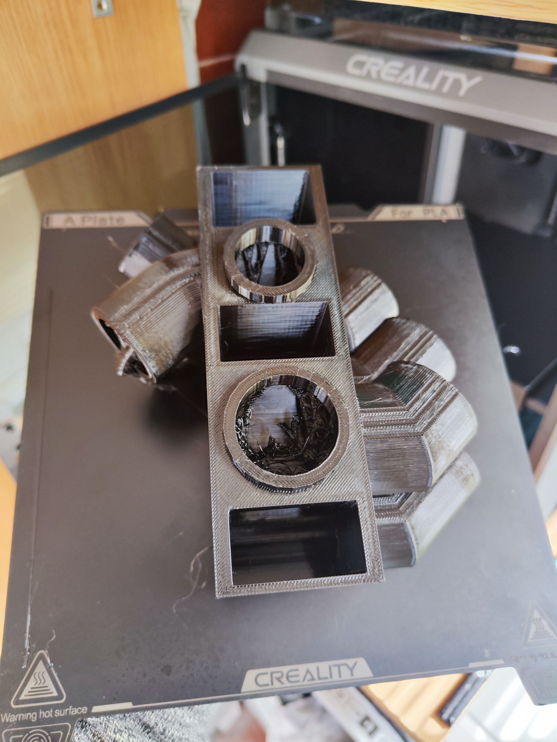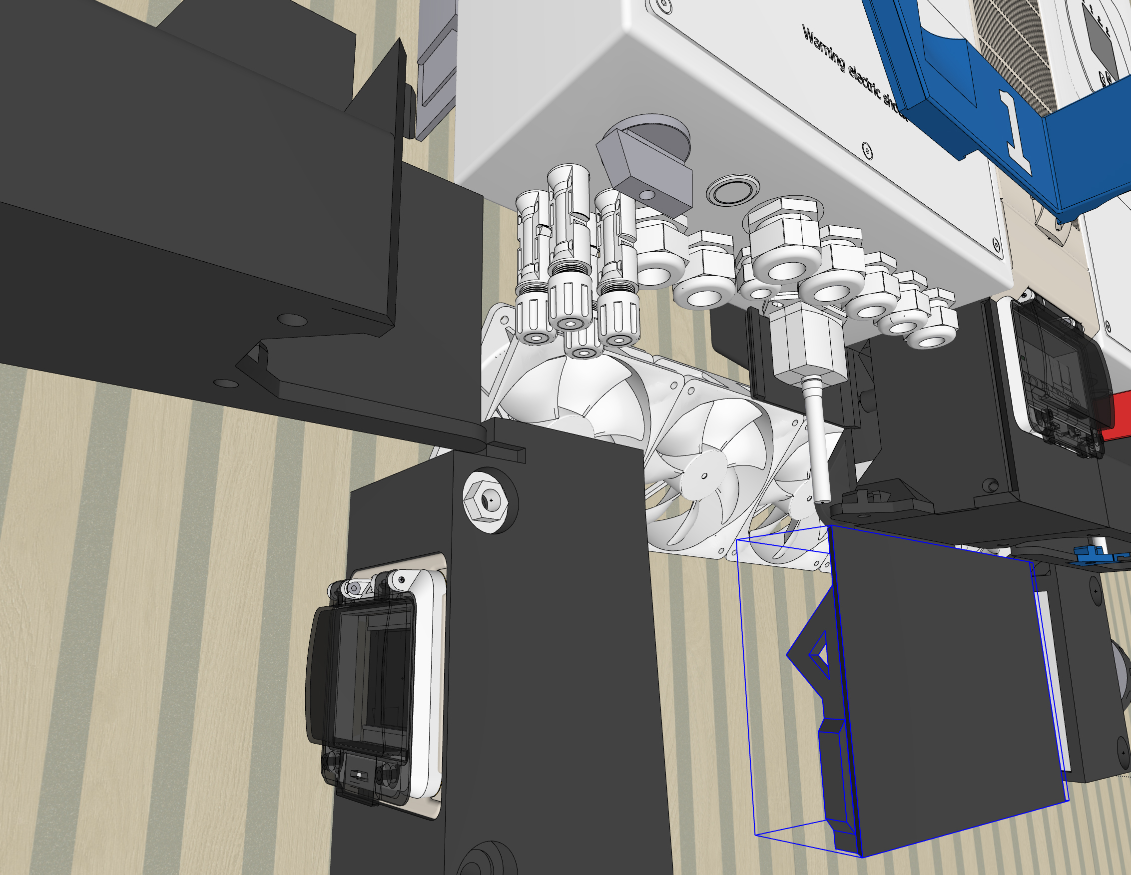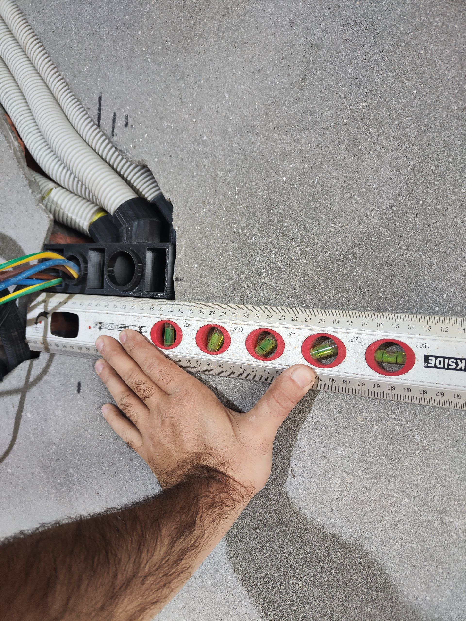 Entre otras cosas también he creado una pieza a medida para conducir los distintos cableados de la instalación, especialmente los de los paneles solares.