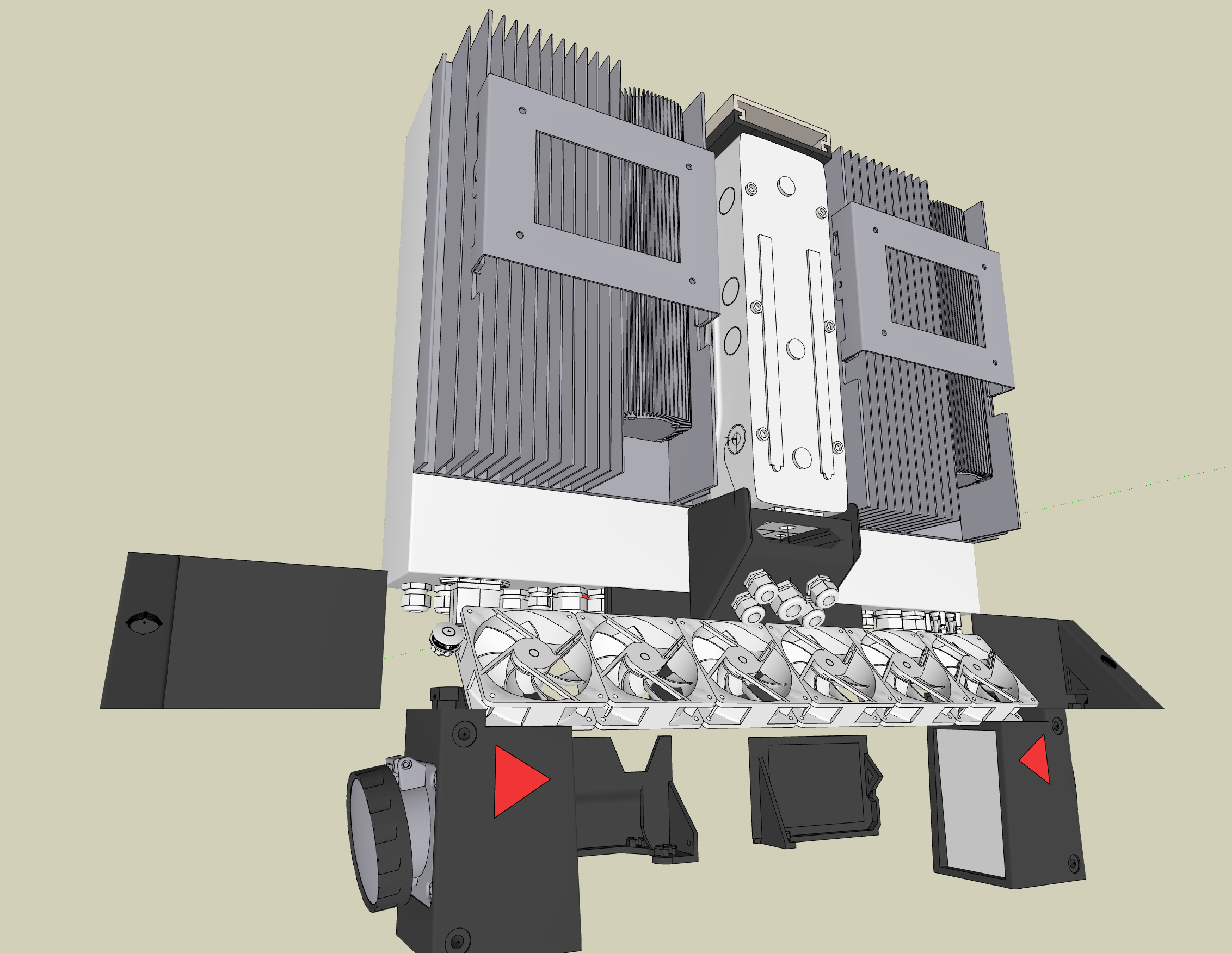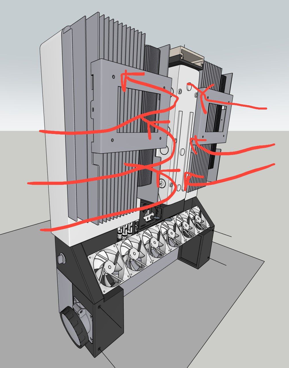 Pero lo mas importante para llevarlo a cabo fue la idea de hacer una instalación poderosa a la par que ocultaba absolutamente todos los cables ofreciendo al mismo tiempo servicios de conexión, fiabilidad, escalabilidad, cumplimiento normativo, con posibilidad de baterías en la parte inferior, un cuadro oculto tras una rejilla de ventilación central adicional de 3 ventiladores RGB de 140mm, 6 ventiladores de 120mm y unos máximos de 9000rpm en la parte posterior, etc...