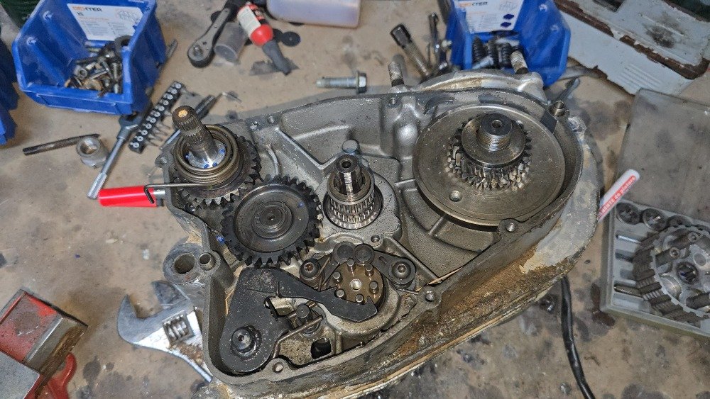 La cual gracias a un amigo pude comprar por un precio simbolico de 30€ , dado que llevaba desde 2009 parada sin cilindro . A dia de hoy tenemos restaurado el motor el cual se encobtraba enganchado y lleno de tirra y barro por dentro , limpiando cada pieza en profundidad dandoles una nueva mano de pintura y dejando la moto como salio de fabrica. Tenemos videos largos de todo el proceso que llevamos hasta el momento , dado que por el momento a falta de localizar un piston estamos parados ya que se nos escapa de presupuesto.