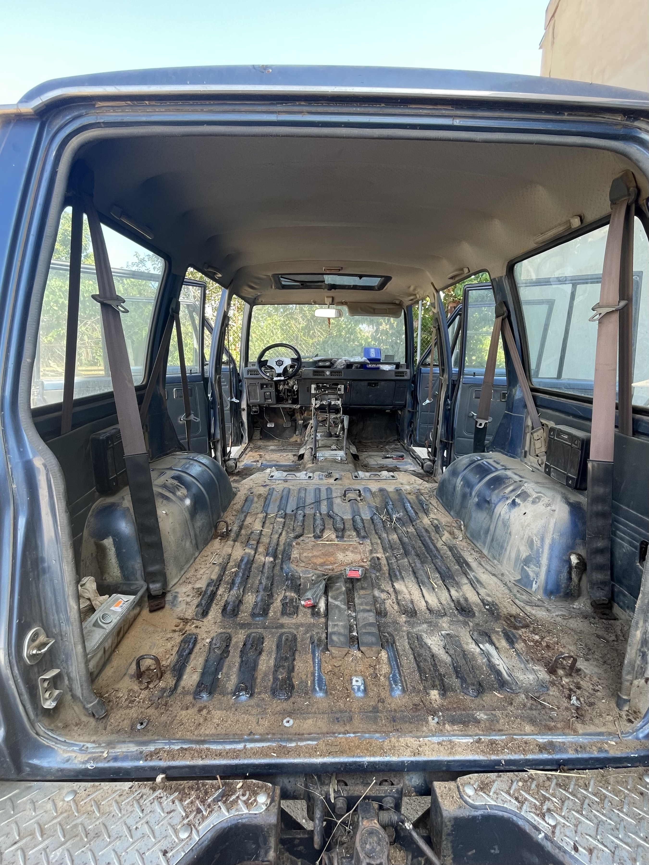 Lo que veis a continuación es la restauración completa de un Mitsubishi Pajero de 1989 que llevaba más de 5 años abandonado, se ha hecho un desmontaje completo del interior y del motor, se le han saneado todas las partes de óxido, lijado y pintado con pintura con Cinc, y montado todo con tornillos nuevos! Se ha empleado WD40 para casi todo, desde la estraccion de tornillos al tratamiento de plásticos para que recupere su brillo! El motor se ha desmontado por completo cambiando culata nueva, válvulas, segmentos y resortes de levas. Turno nuevo, radiador nuevo, y se ha adaptado un intercooler de otro Pajero. Todavía me quedan cositas por terminar! Ayudadme Please! 😀