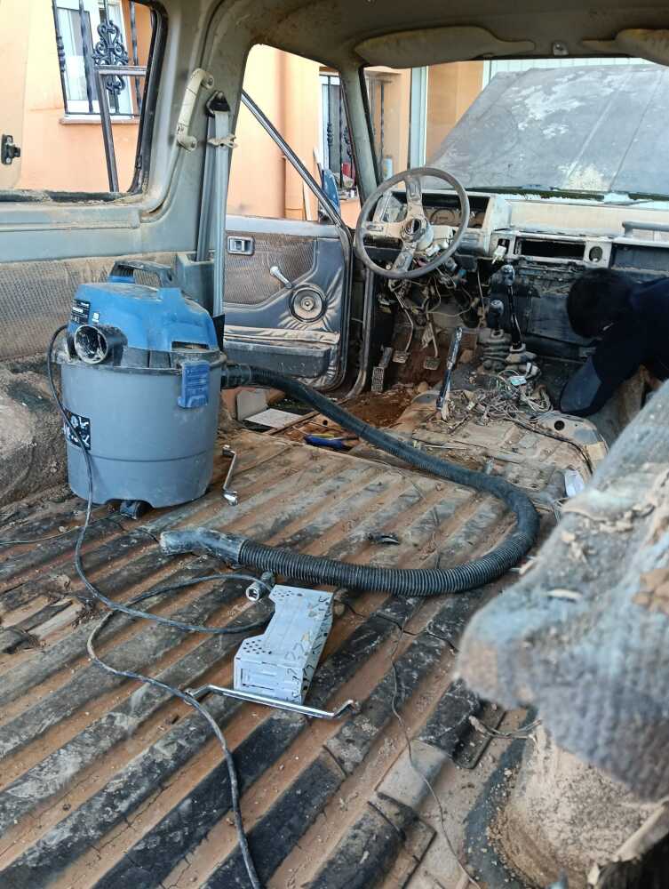 El principal objetivo era desmontar todo el interior con el fin de evitar la corrosión del suelo del vehículo y la putrefacción de los asientos y tapizados.