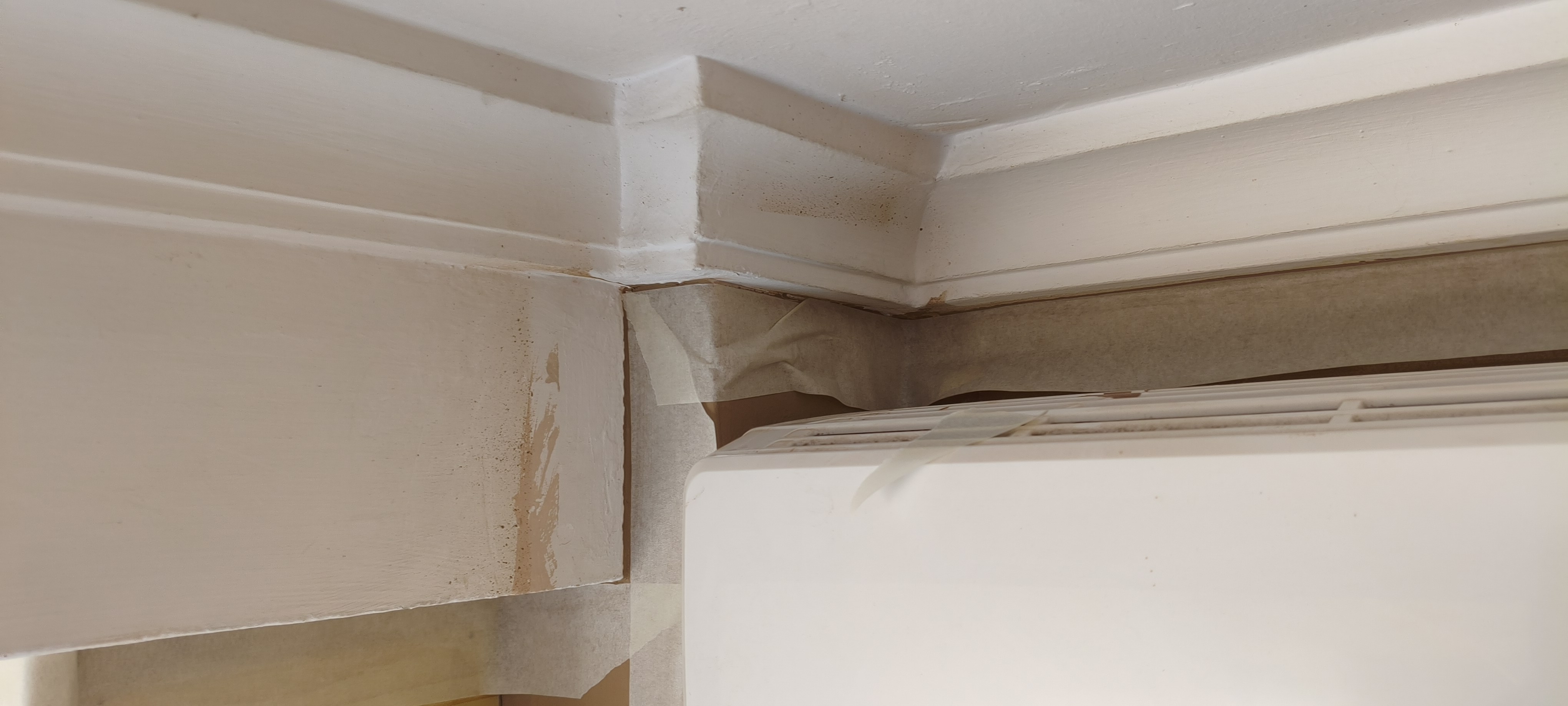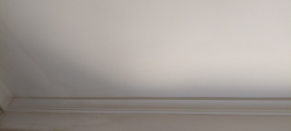 El techo está manchado y se tiene que repintar de blanco sin tocar las paredes.
