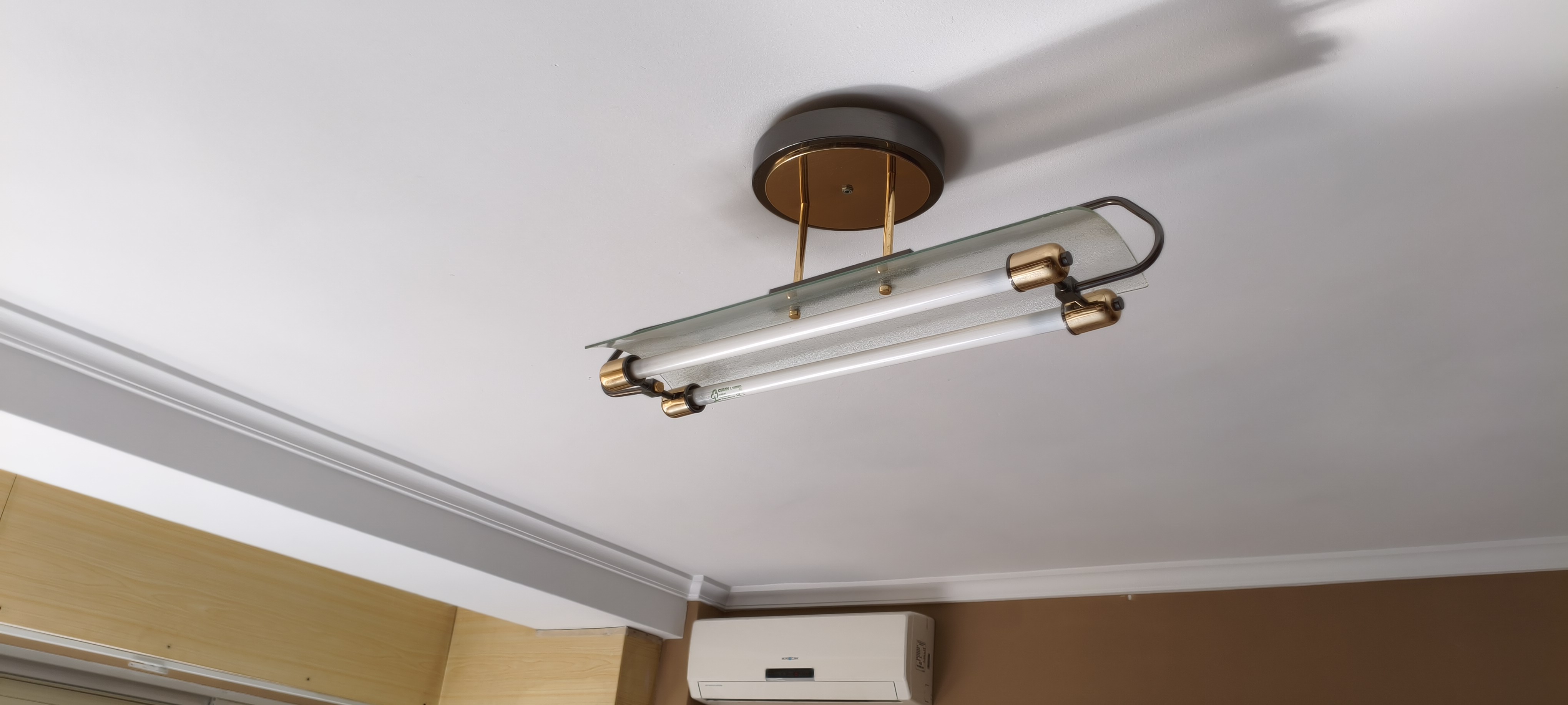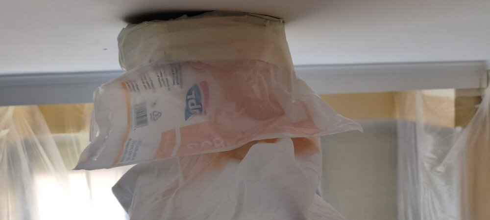 con cinta o papel tapamos la lámpara y el aire acondicionado.