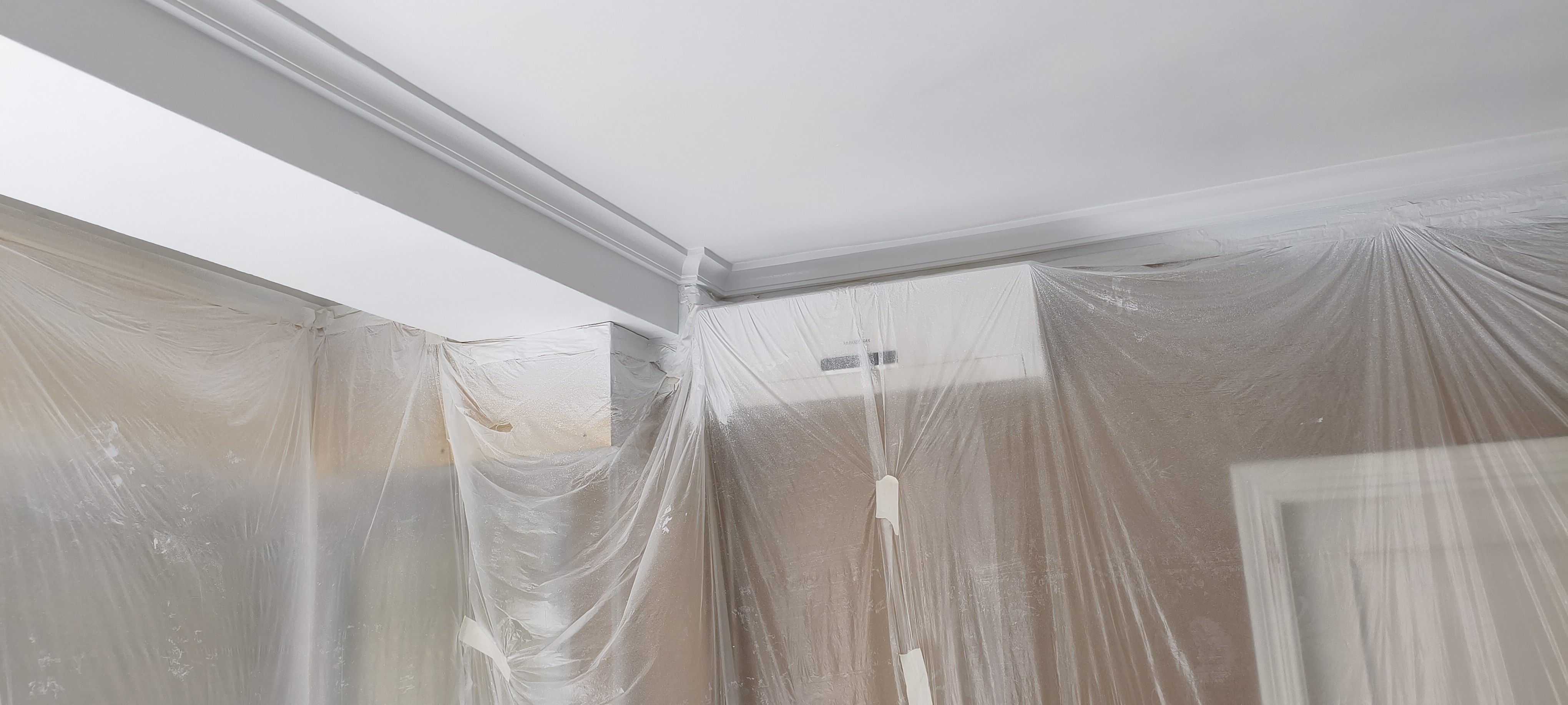 Toca quitar la cinta antes de ir retirando el plástico y demás, conviene hacerlo cuanto antes porque es fácil hacer un desconchón si la pintura está seca del todo.
