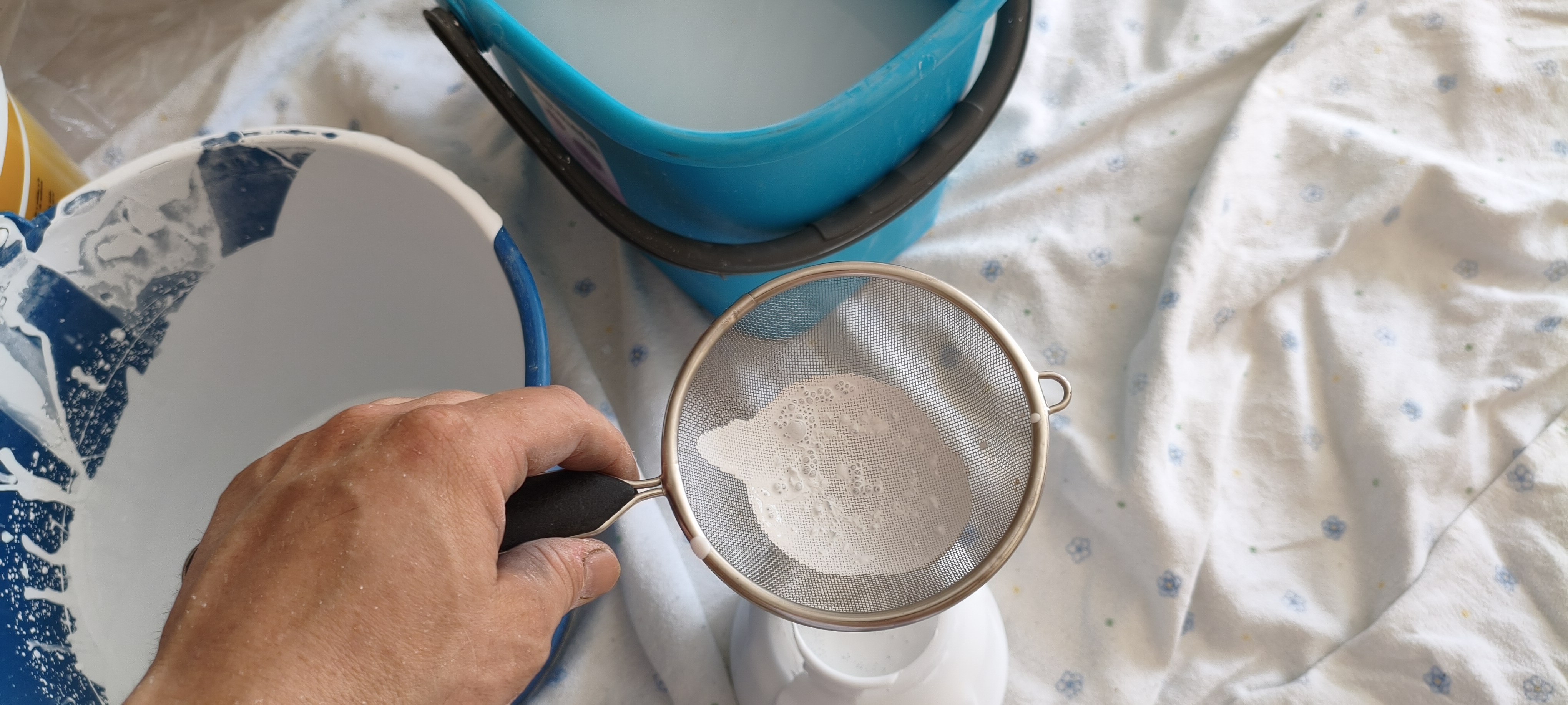 Conviene poner cartones o mantas viejas, en éste caso tengo mantas viejas que uso para éstos casos.