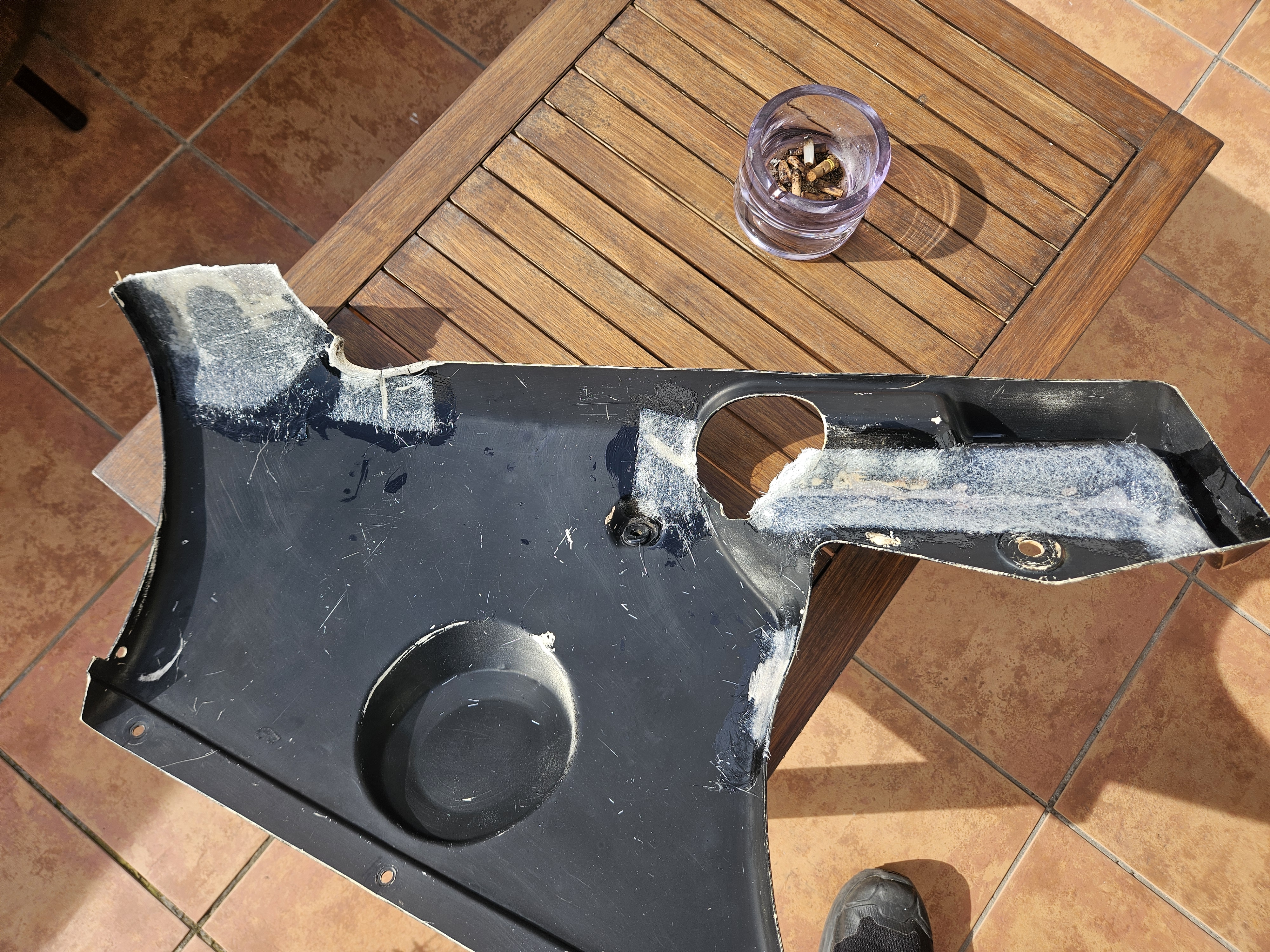 Empecé poniéndola al día para pasar la ITV, revisando lo básico y dándole una buena puesta a punto. Luego me metí con la parte estética: trabajé las tapas en fibra de vidrio, compré algunas piezas rotas y fui dándole forma poco a poco.