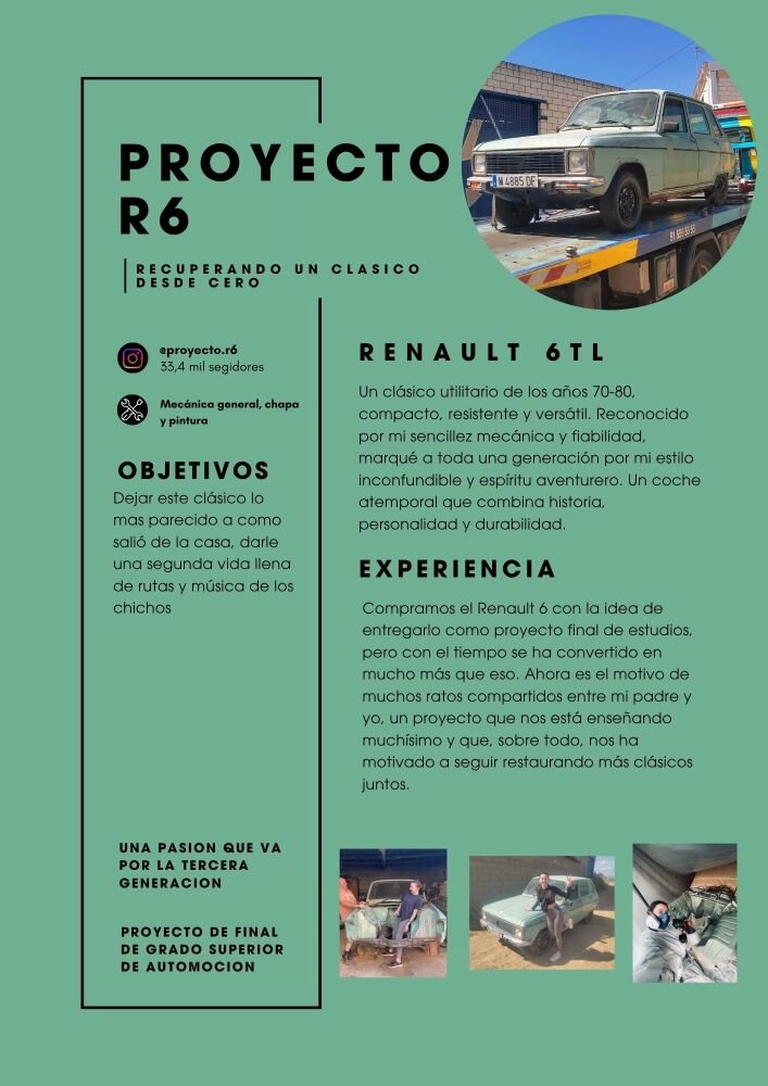 Este proyecto en concreto lo compré con el objetivo de presentarlo al terminar el grado superior de automoción. Pero a medida que avanzábamos con el me daba cuenta que era mas una escusa para pasar tiempo compartiendo una pasión de padre a hija que algo de "estudios". Este proyecto me esta enseñando mucho, no solo de mecánica y carrocería también sobre paciencia, dedicación y el valor de mantener vivas las historias que hay detrás de cada coche.