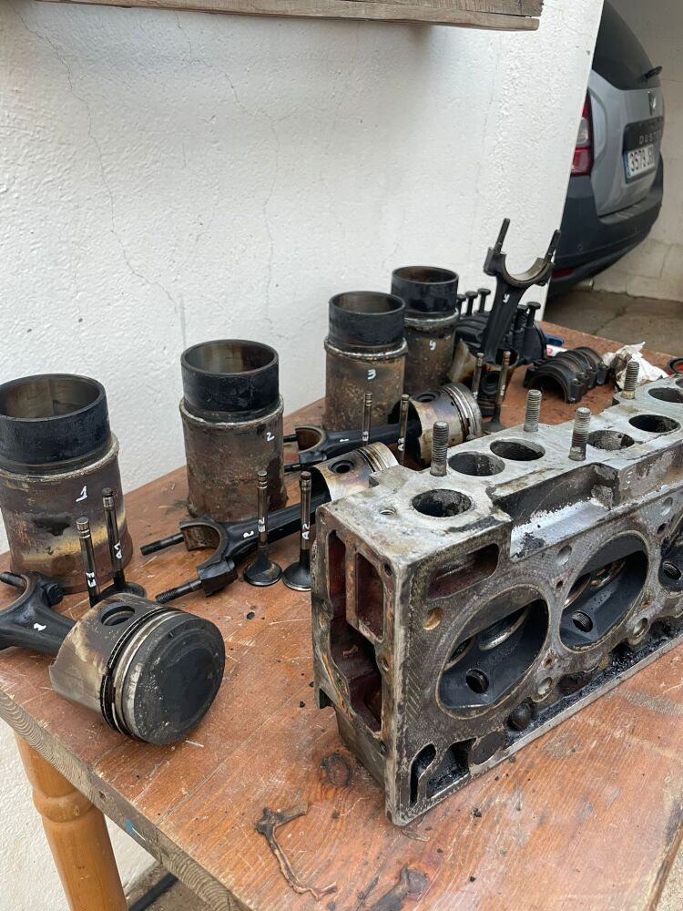 El motor nos lo encontramos en bastante malas condiciones tanto por dentro como por fuera, aunque me lo traje en marcha. Estoy intentando dejarlo lo mas nuevo posible, cambiando casquillos, segmentos, válvulas, juntas y retenes... Le hice plano a la culata y mandé a ultrasonido pistones, camisas, cigüeñal y culata.
