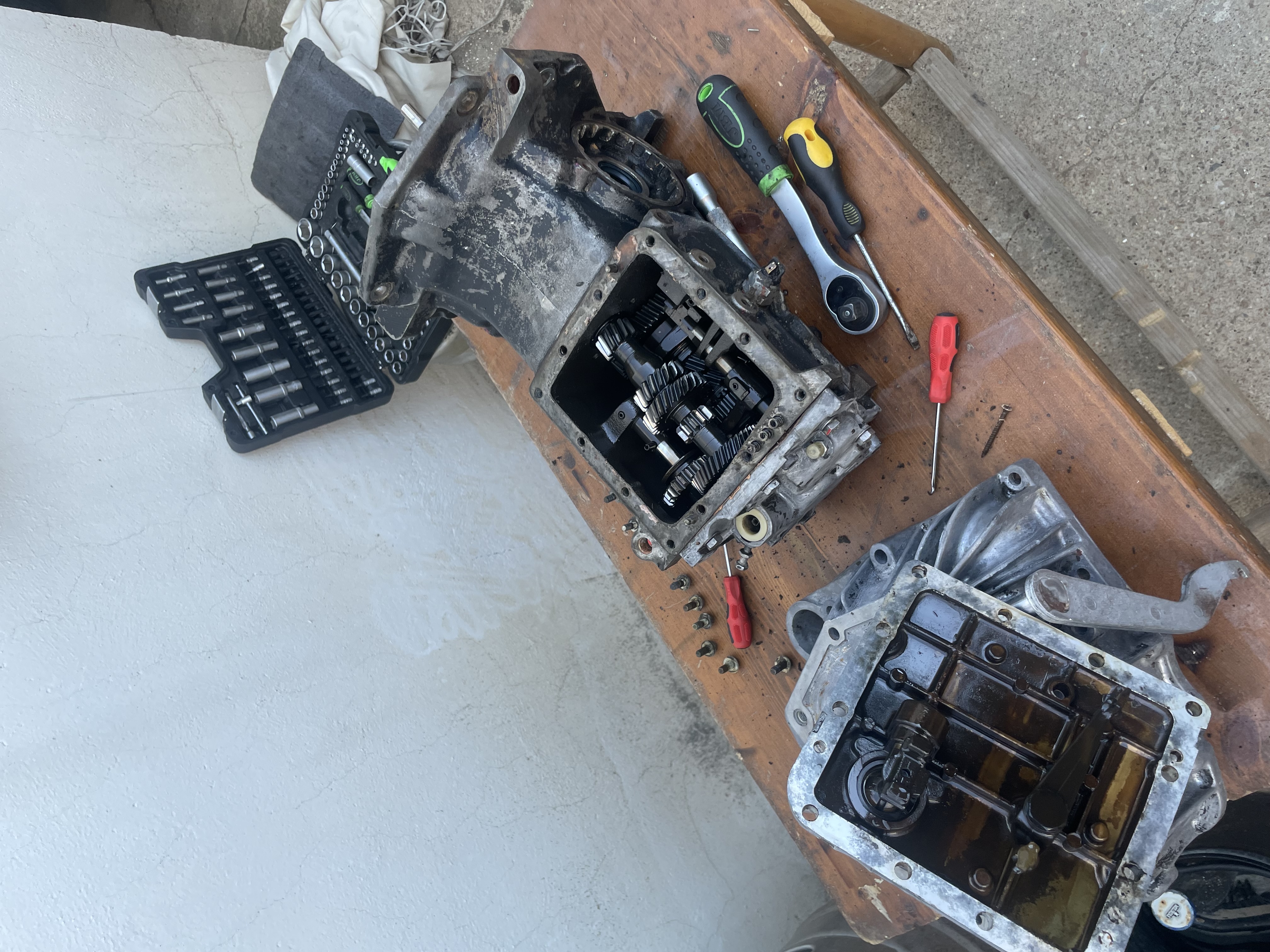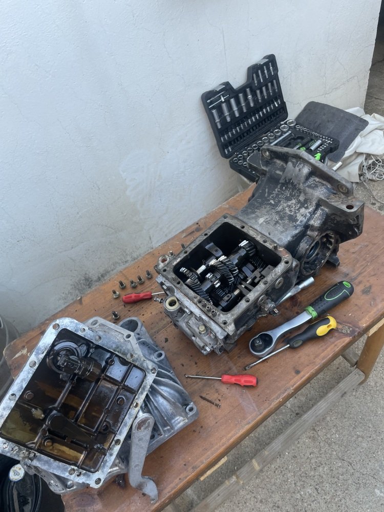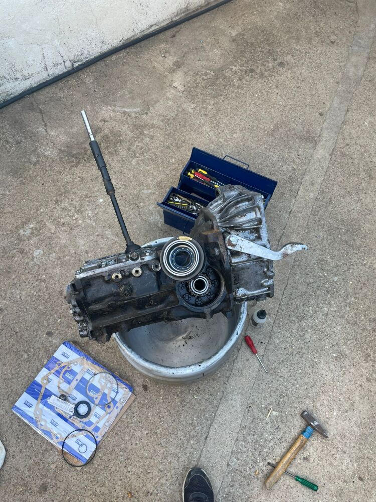 La caja de cambios dio menos jaleo que el motor. Le di una buena limpieza y cambié juntas y retenes.