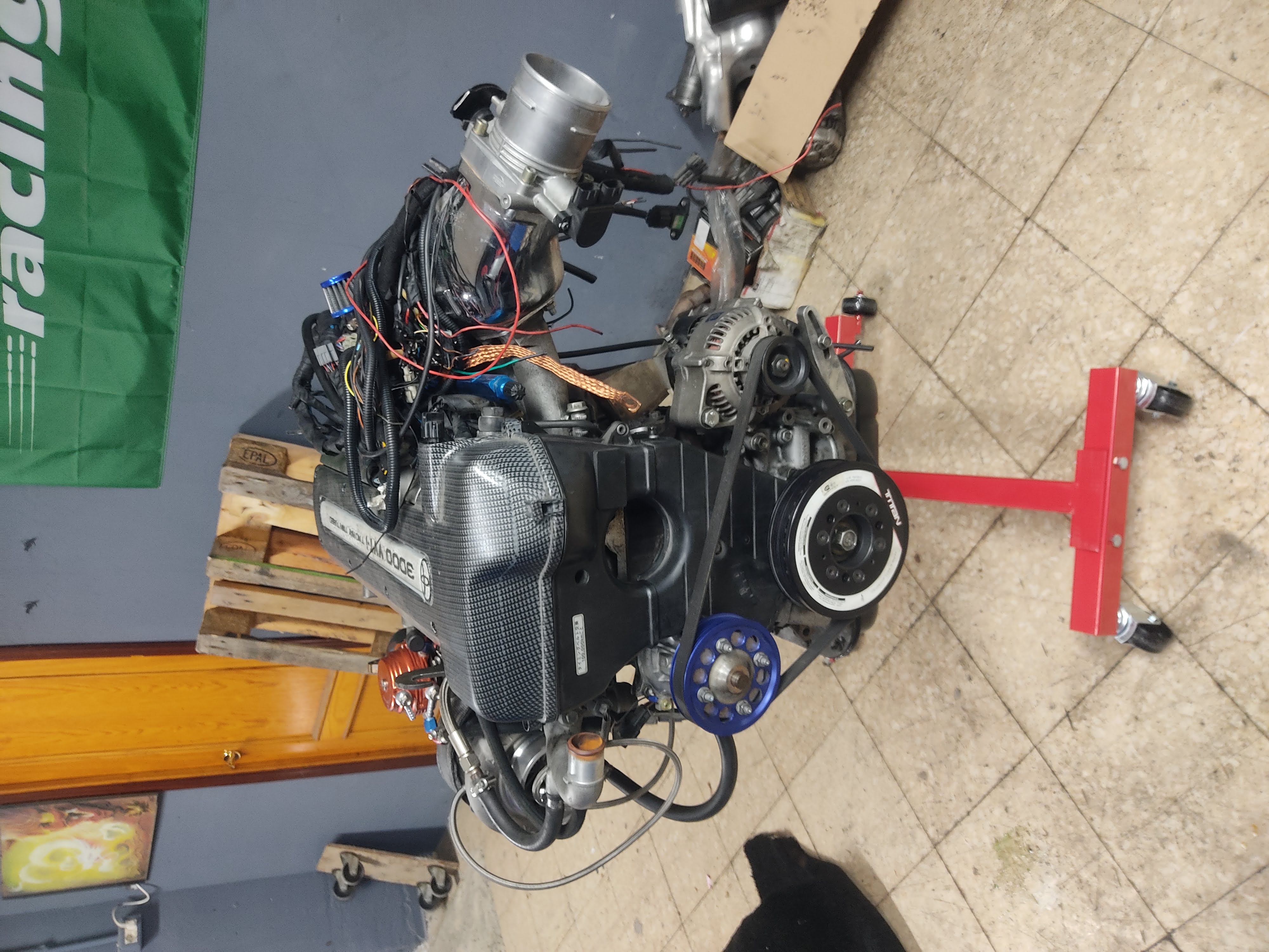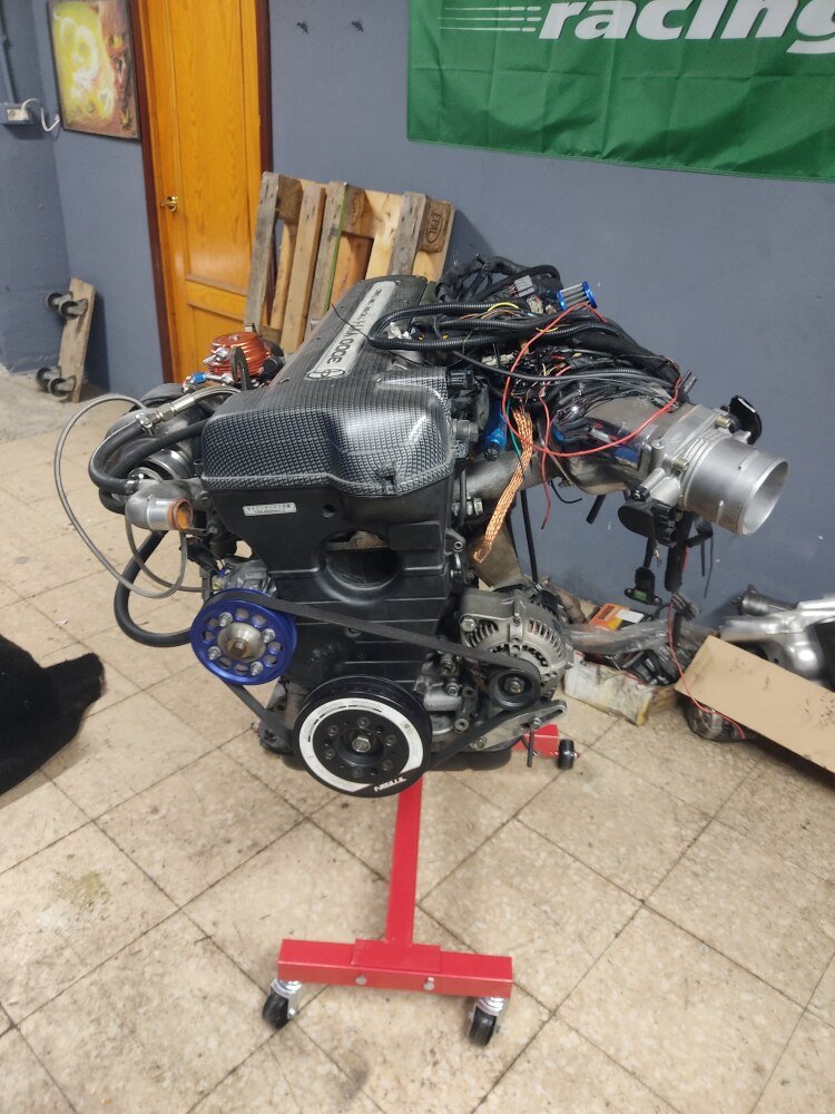 Está funcionando, listo para hacer muchos caballos (si no explota), y con una lista interminable de piezas: suspensiones, brazos regulables, diferencial, puente, cardan a medida, bodykit, centralita, motor forjado.... para escribir un libro solo con mejoras. Lo mejor que he podido permitirme para hacer una máquina de drift.