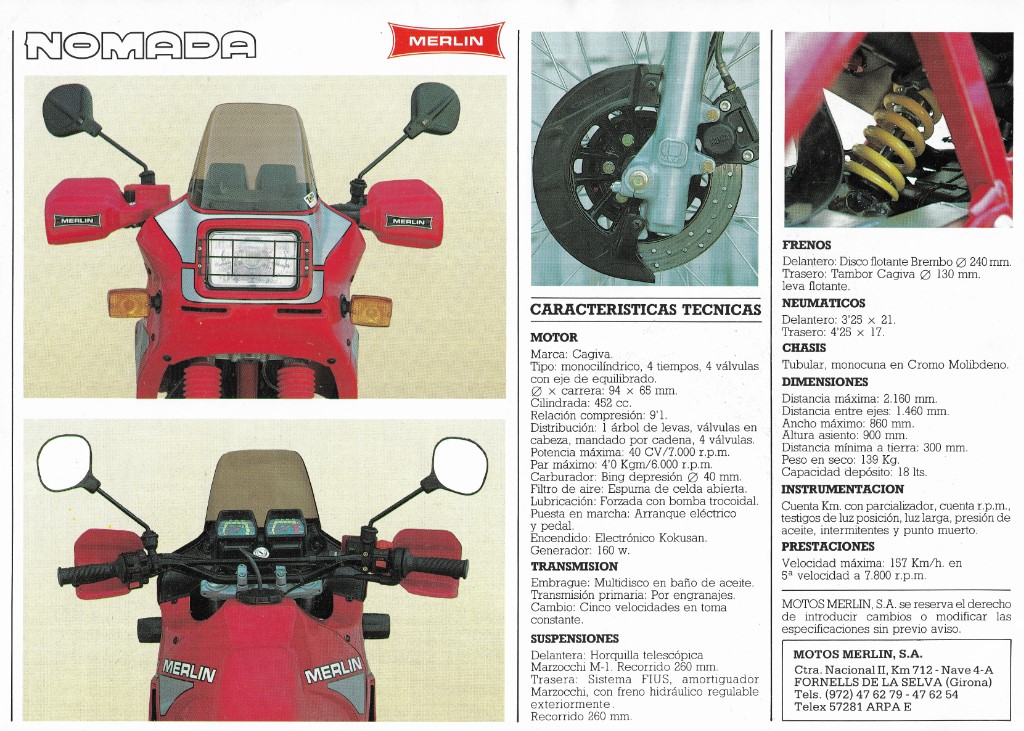 Por casualidad buscando moto para comprar en un portal de motos de ocasión, vi que había en venta una moto de la que me enamoré hacia 35 años. Yo era solo un niño pero cuando mi vecino arrancaba su MERLIN NOMADA 500, y escuchaba el latir de su monocilindrico de 450 cc. Soñaba con que algún día yo podría subirme en una. Pués ni corto, ni perezoso le hice una oferta al vendedor que no tuvo problemas en aceptar y así me hice una de ellas. Aunque esta moto necesitaba mucho tiempo y dedicación para volverla a dejar en su estado original. Ya que la habian pintado toda de otros colores, no tenía los adhesivos original, ni muchas de la piezas. Buscando, buscando, pude encontrar otro chasis de esta moto que, aunque en muy mal estado, eran todo piezas originales. Y decidí que entre las dos, podría recomponer una en perfecto estado original, tal como salió de la fábrica.