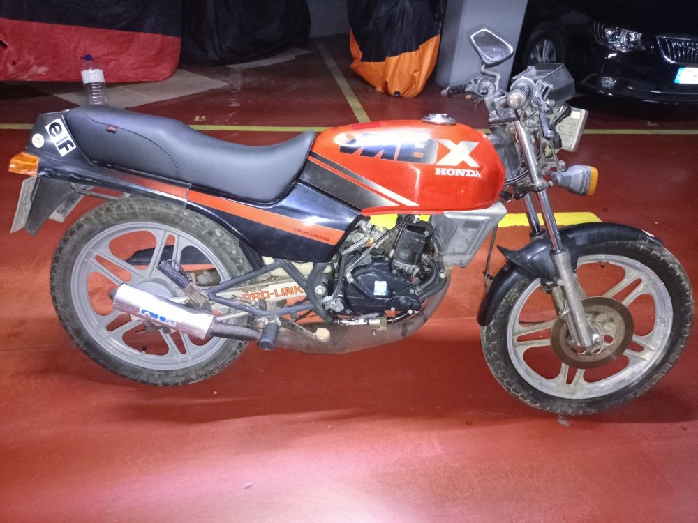 Restaurando una Honda MBX del Año 1985 la moto que no me pude comprar con 16 años, se ha desmontado entera y la estoy restaurando desde cero ya que llevaba abandonada 17 años, se ha reparado todo el motor, pintura de chasis, reparación de piezas eléctricas, cambio de neumáticos, actualmente ya ha arrancado, ya solo falta pintura de carrocería. Un sueño hecho realidad!!!