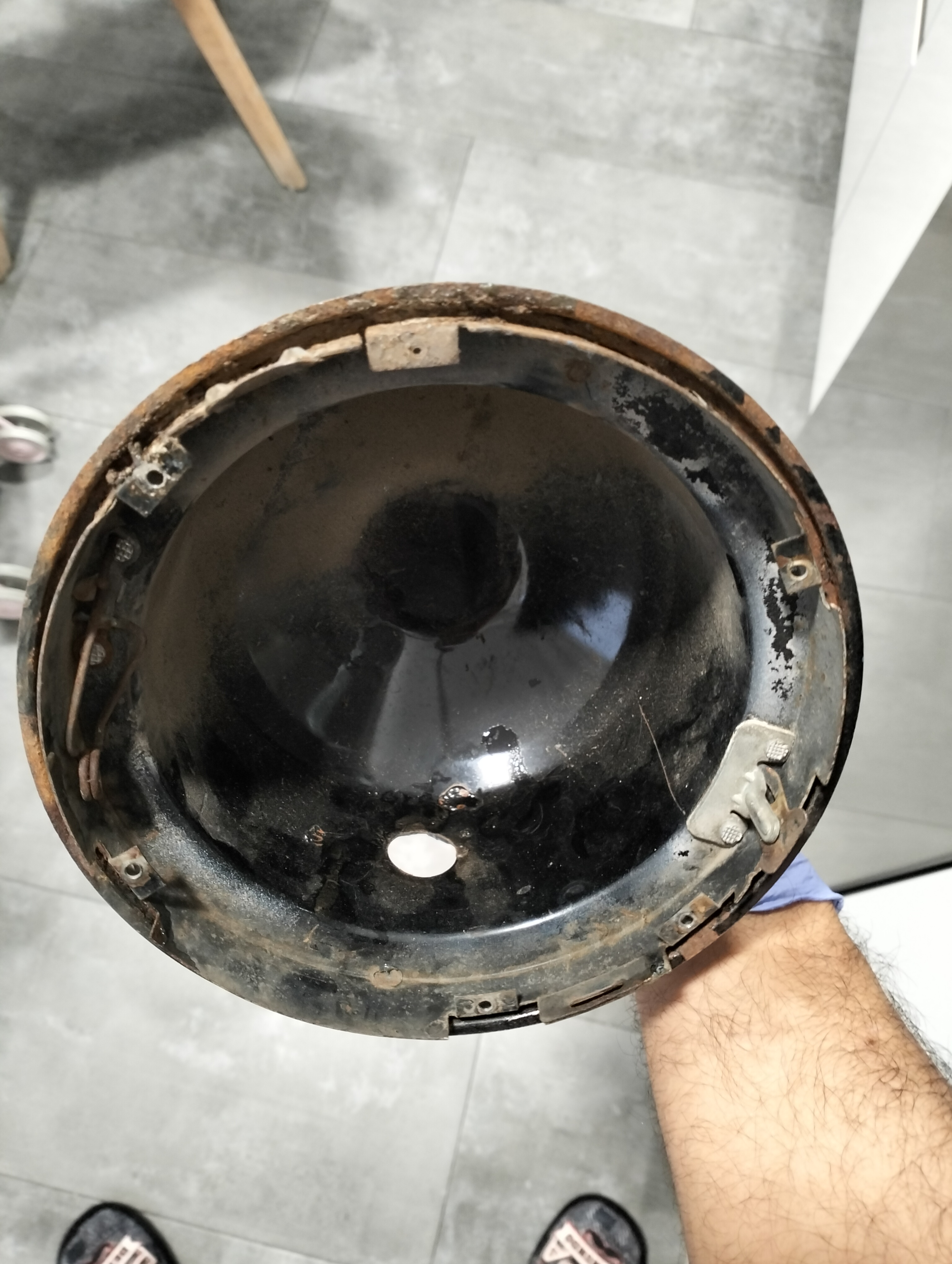 Las campanas interiores de los faros delanteros estaban muy oxidadas por su exposición a la humedad, especialmente en las partes de abajo de ambas. En esta ocasión, la dremel me ayudó a eliminar toda esa corrosión.