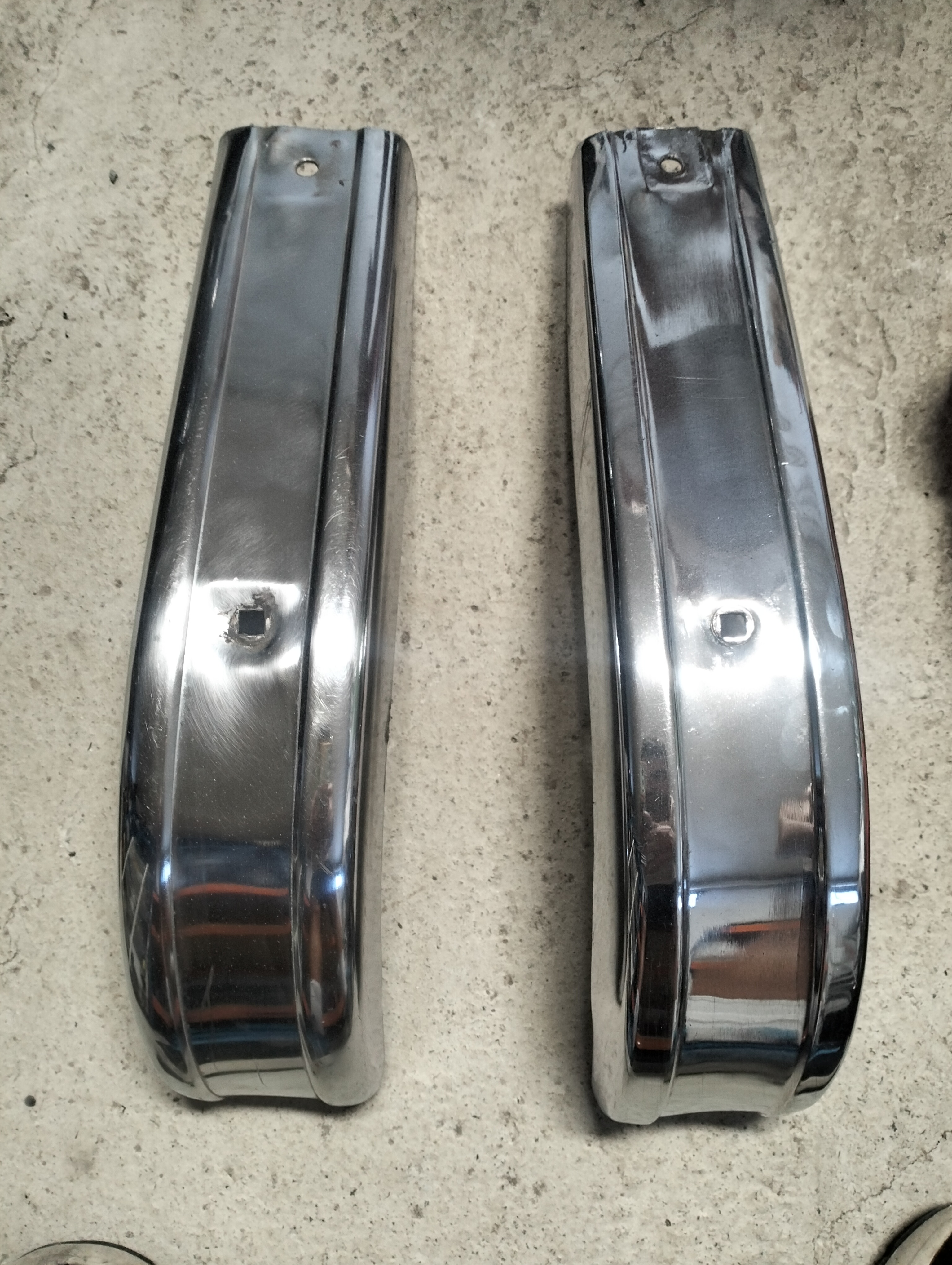 Aunque el trabajo más delicado estaba hecho, quedaba toda la parte fina. Otro aspecto que me levó mucho tiempo fueros los paragolpes cromados. De hecho, de lo que el coche tenía puesto, pude recomponer un paragolpes completo utilizando piezas del delantero y del trasero. Con estas piezas originales, el trabajo era limpiar bien por dentro, quitar el óxido, cubrir con antioxidante e imprimación de zinc; por la parte exterior pulido con dos discos y pulimentos diferentes para devolver a un viejo cromado su esplendor. Nada que ver esta calidad con los cromados actuales ni con las piezas de sustitución que compré para componer el paragolpes que me faltaba.