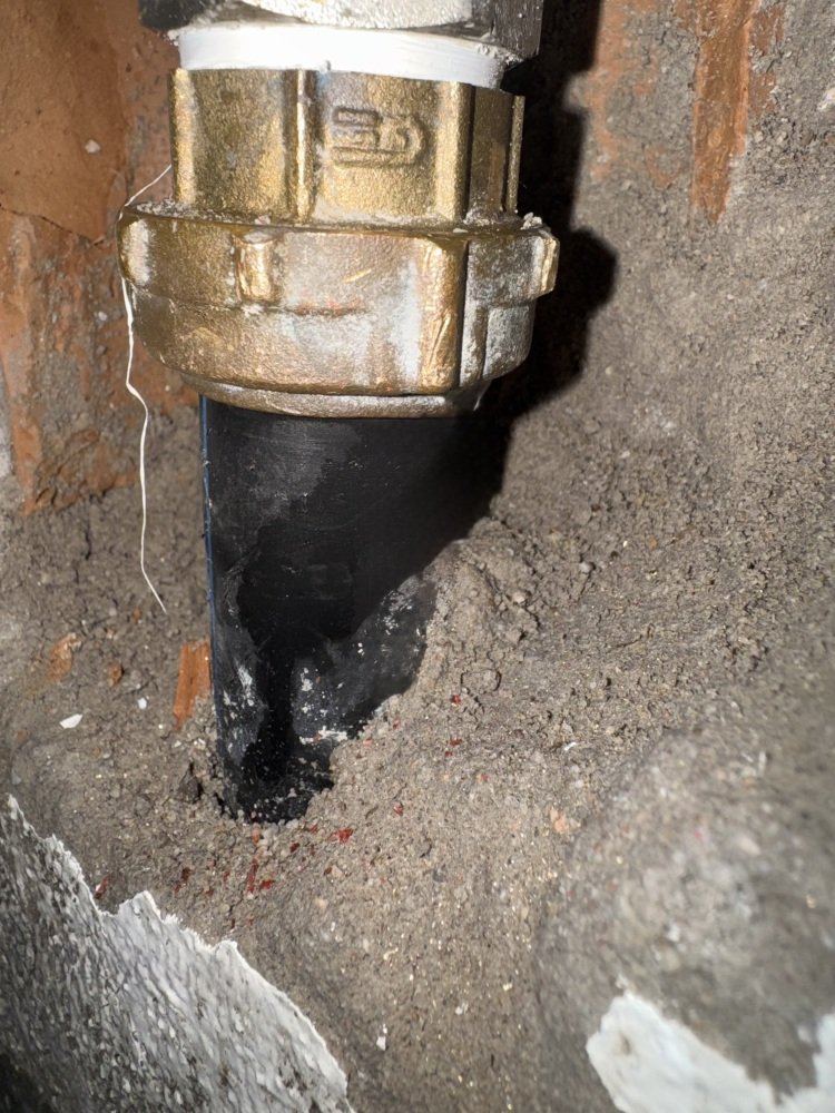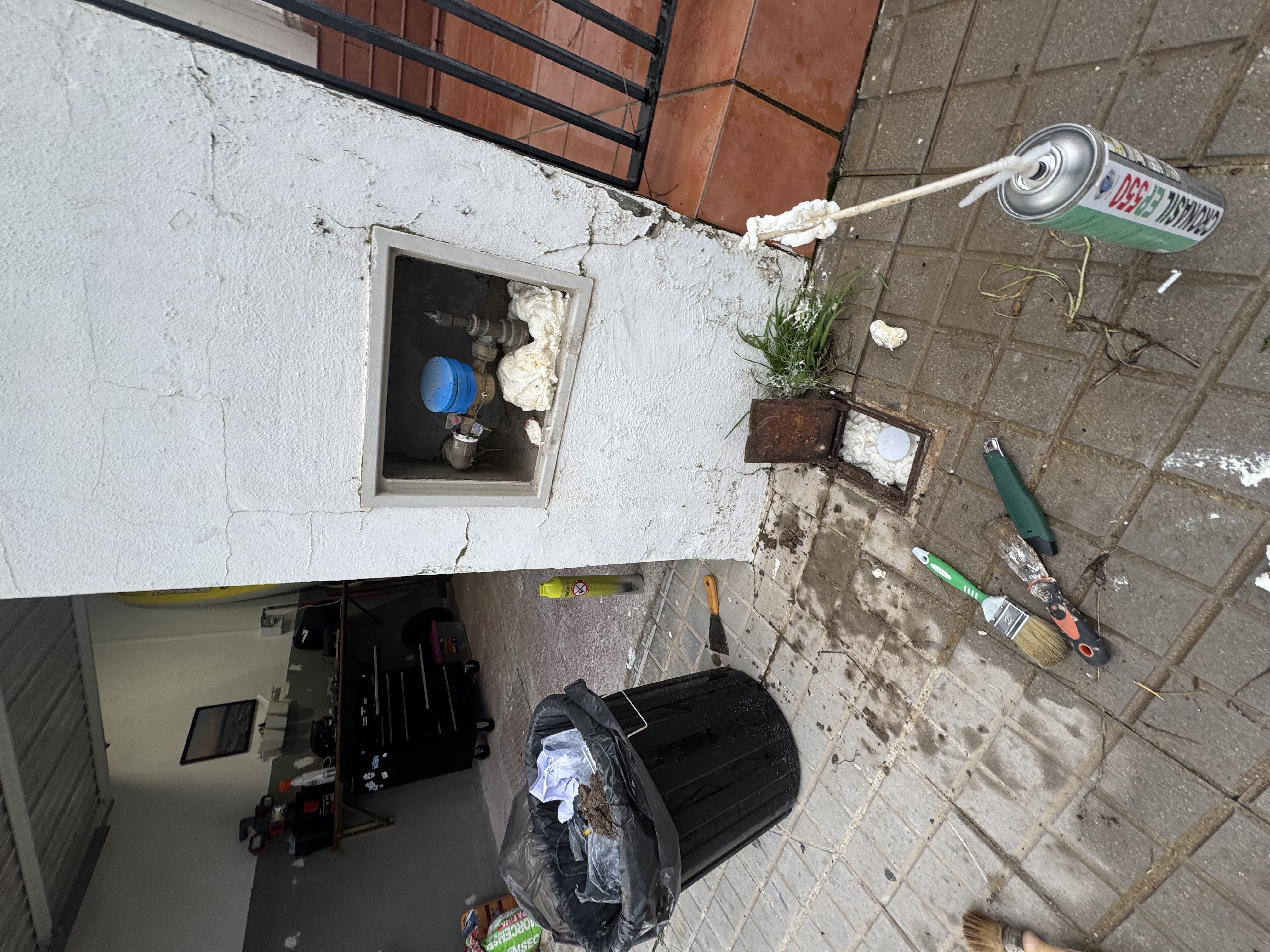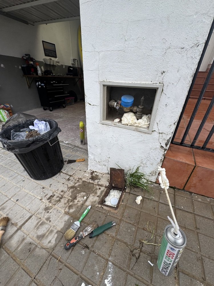 En este paso puse espuma de poliuretano en un hueco por el que se filtraba agua desde el contador de agua hacia adentro.