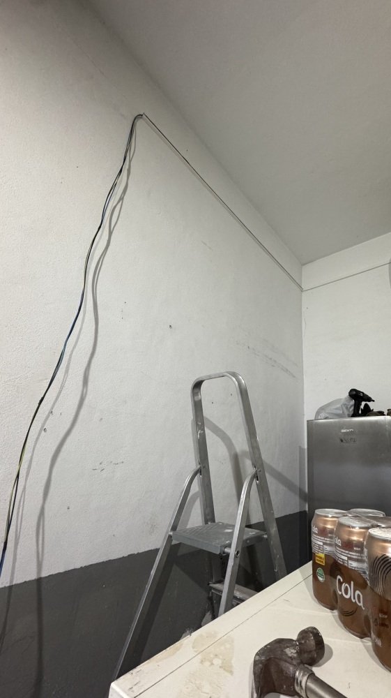 En este paso puse canaletas y cables desde la caja de registro para poner una caja con enchufes e interruptores.