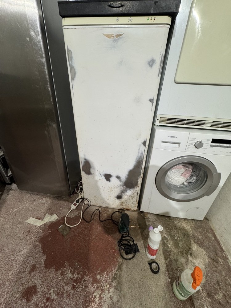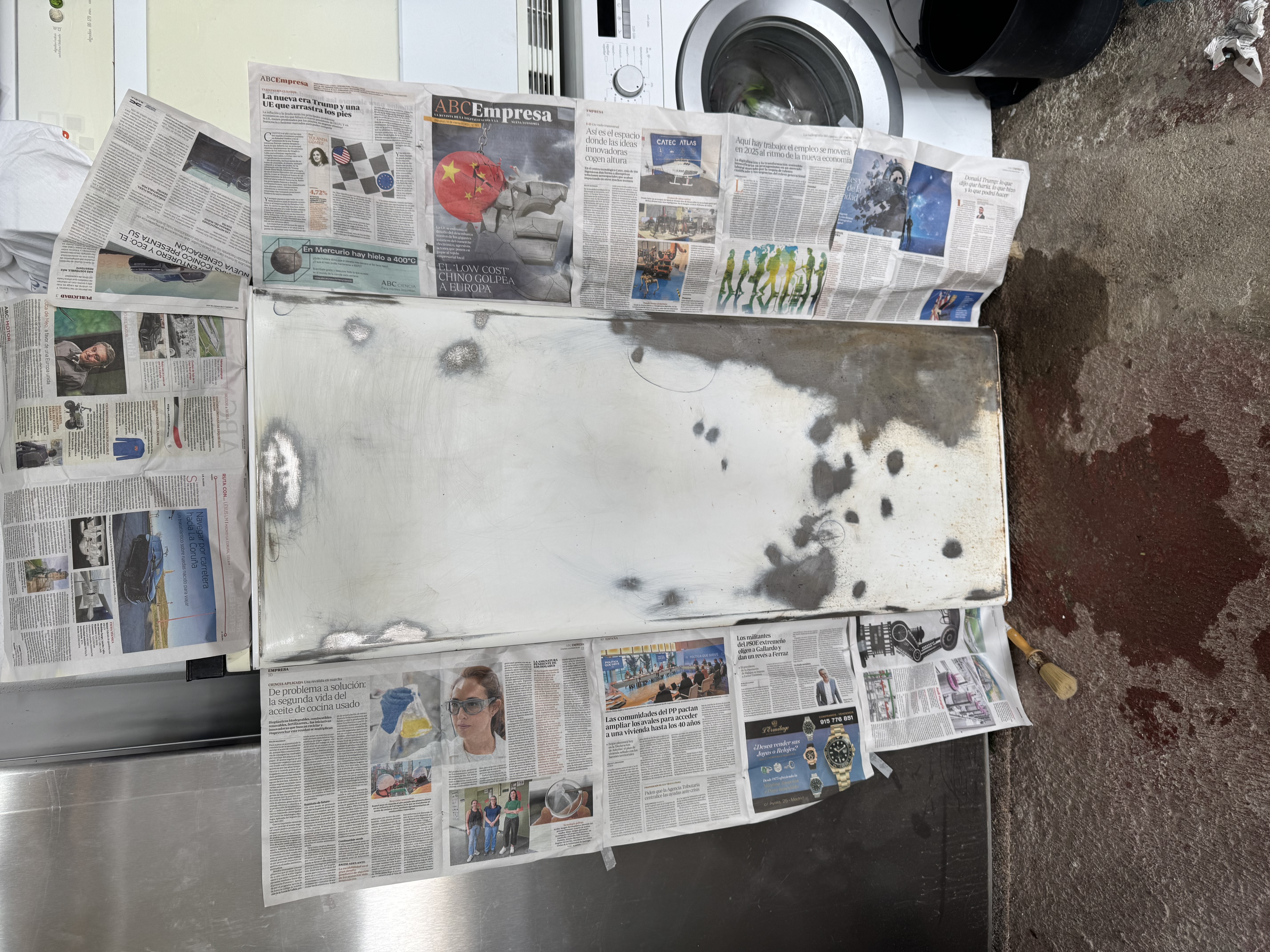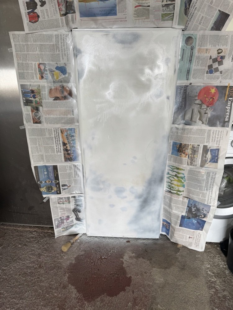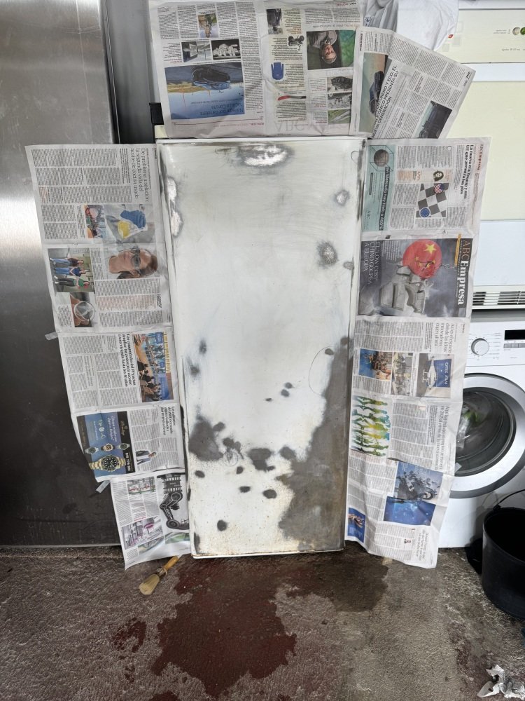 Había un congelador que estaba oxidado y lo lijé y pinté.
