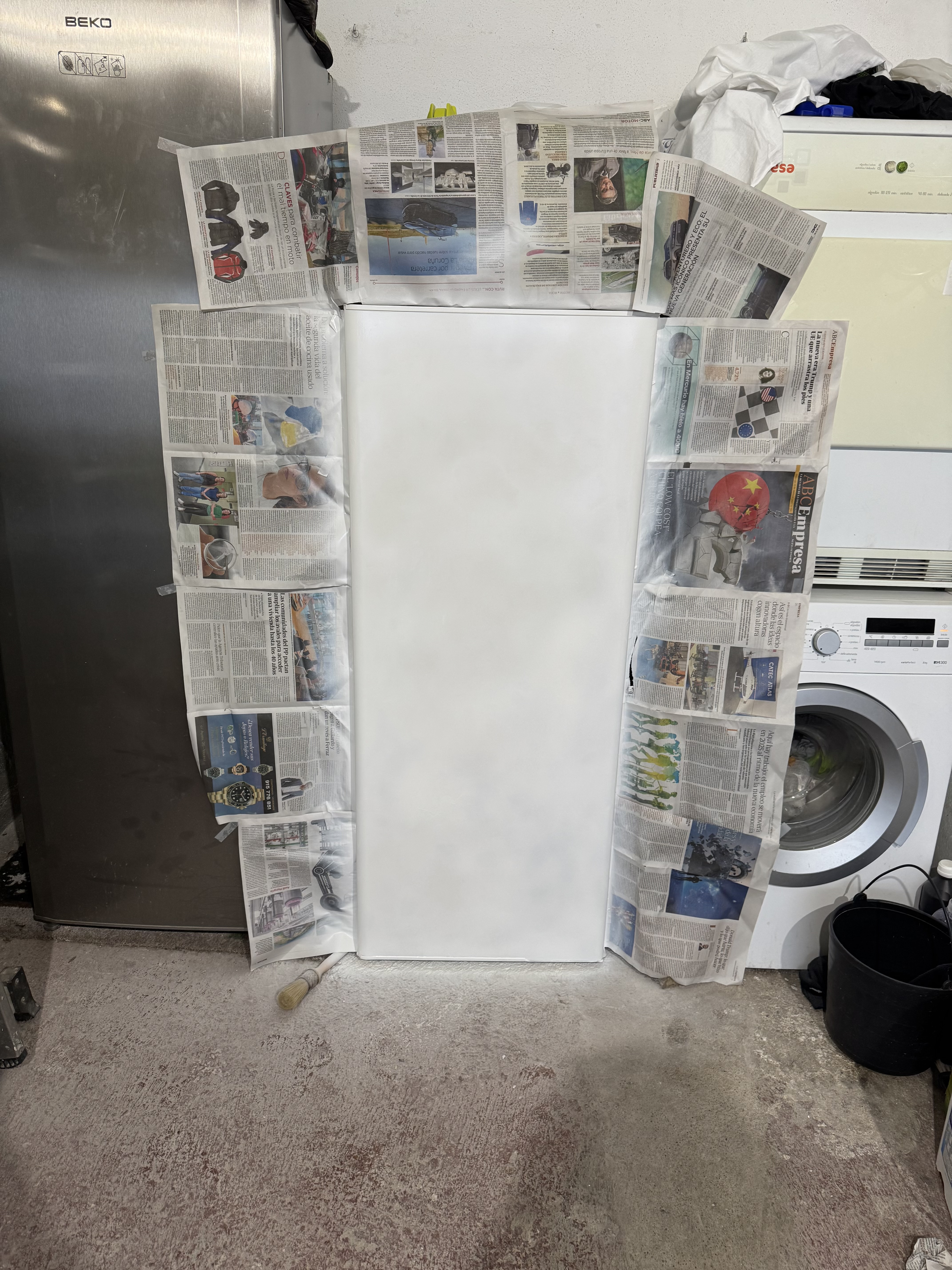 En este paso encintamos y retiramos las cosas para pintar en blanco.