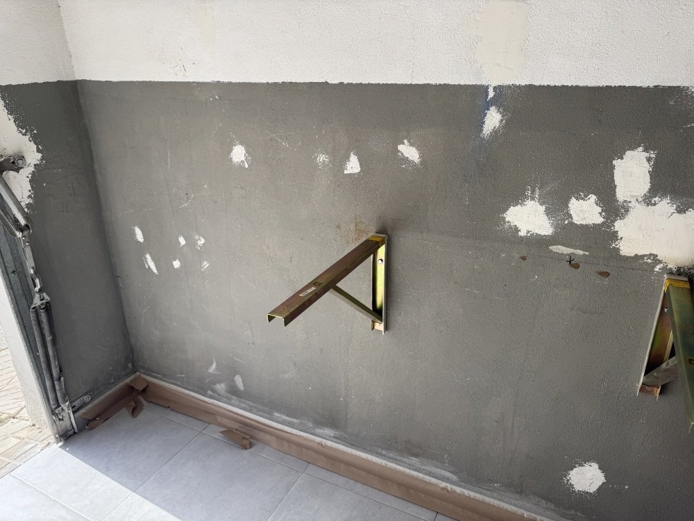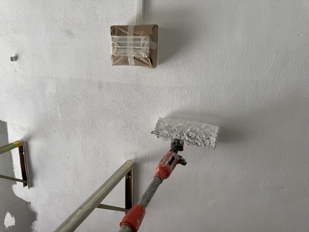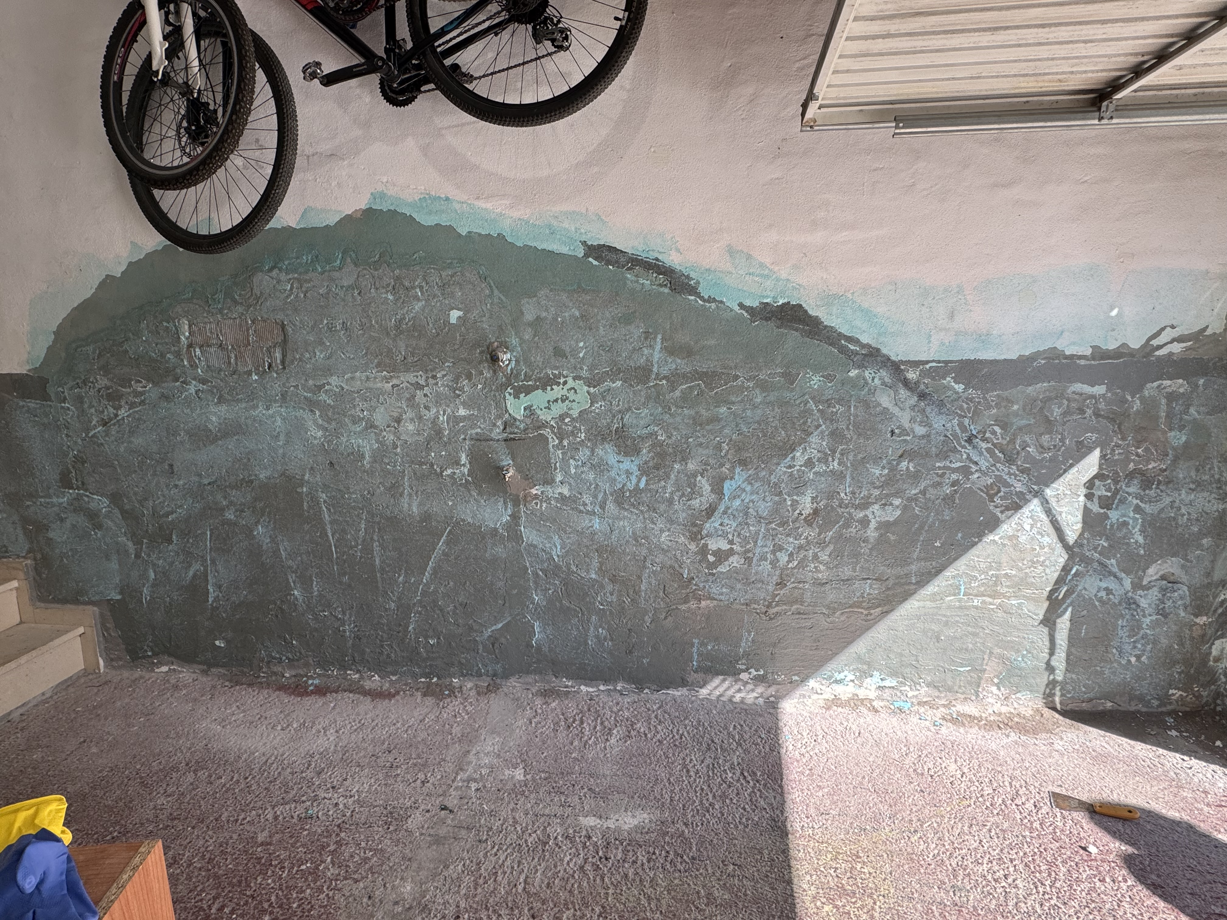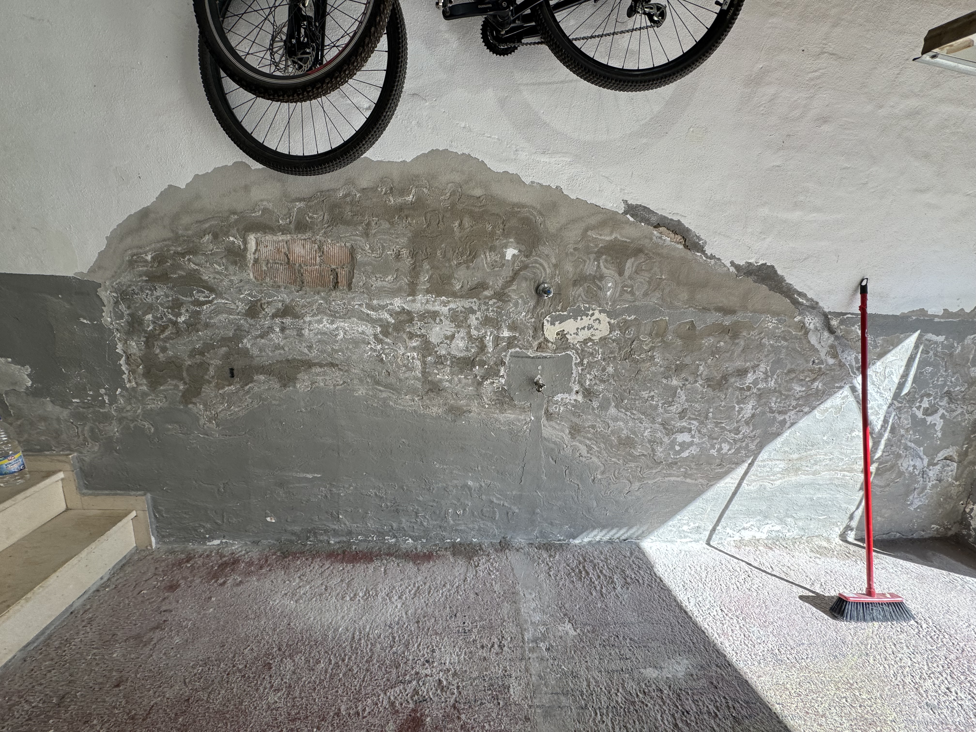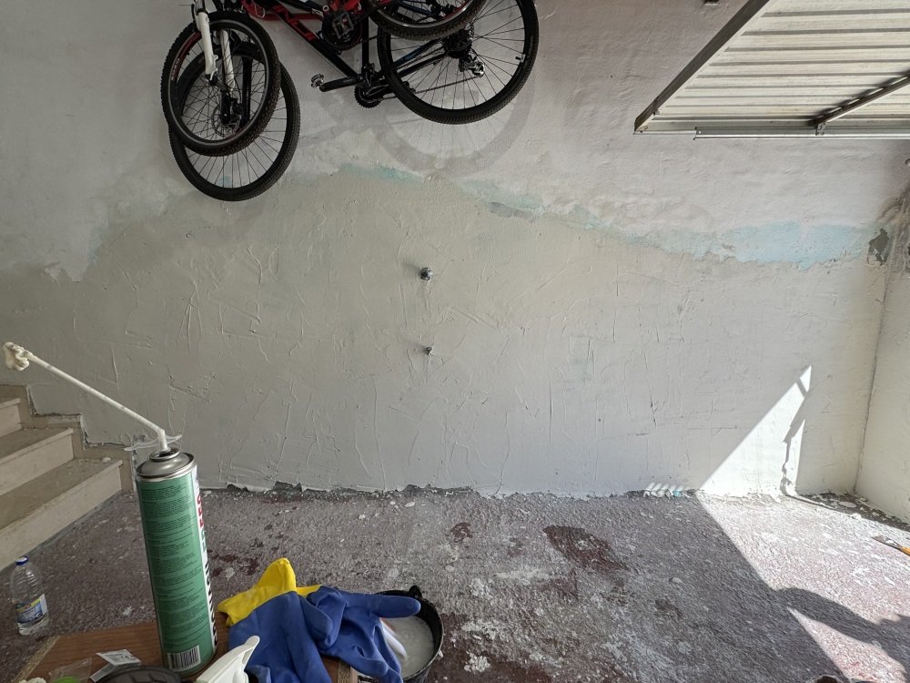 En la pared izquierda había humedad en toda la pared así que piqué la pared , le puse puente de unión, y después monocapa fino.
