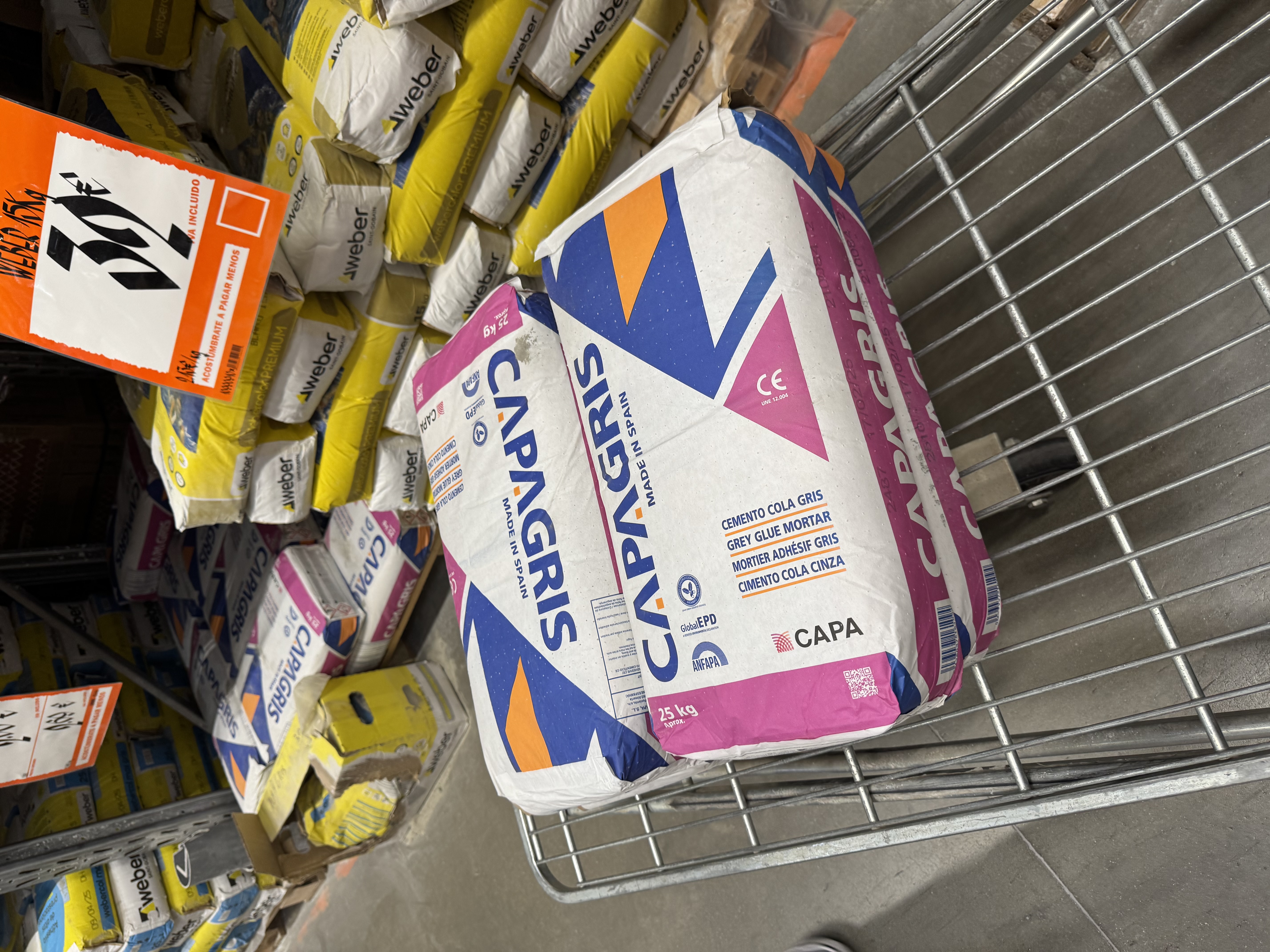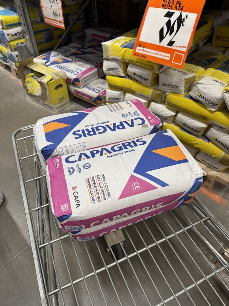 Fuimos a comprar los materiales necesarios para empezar a enlosar el suelo.