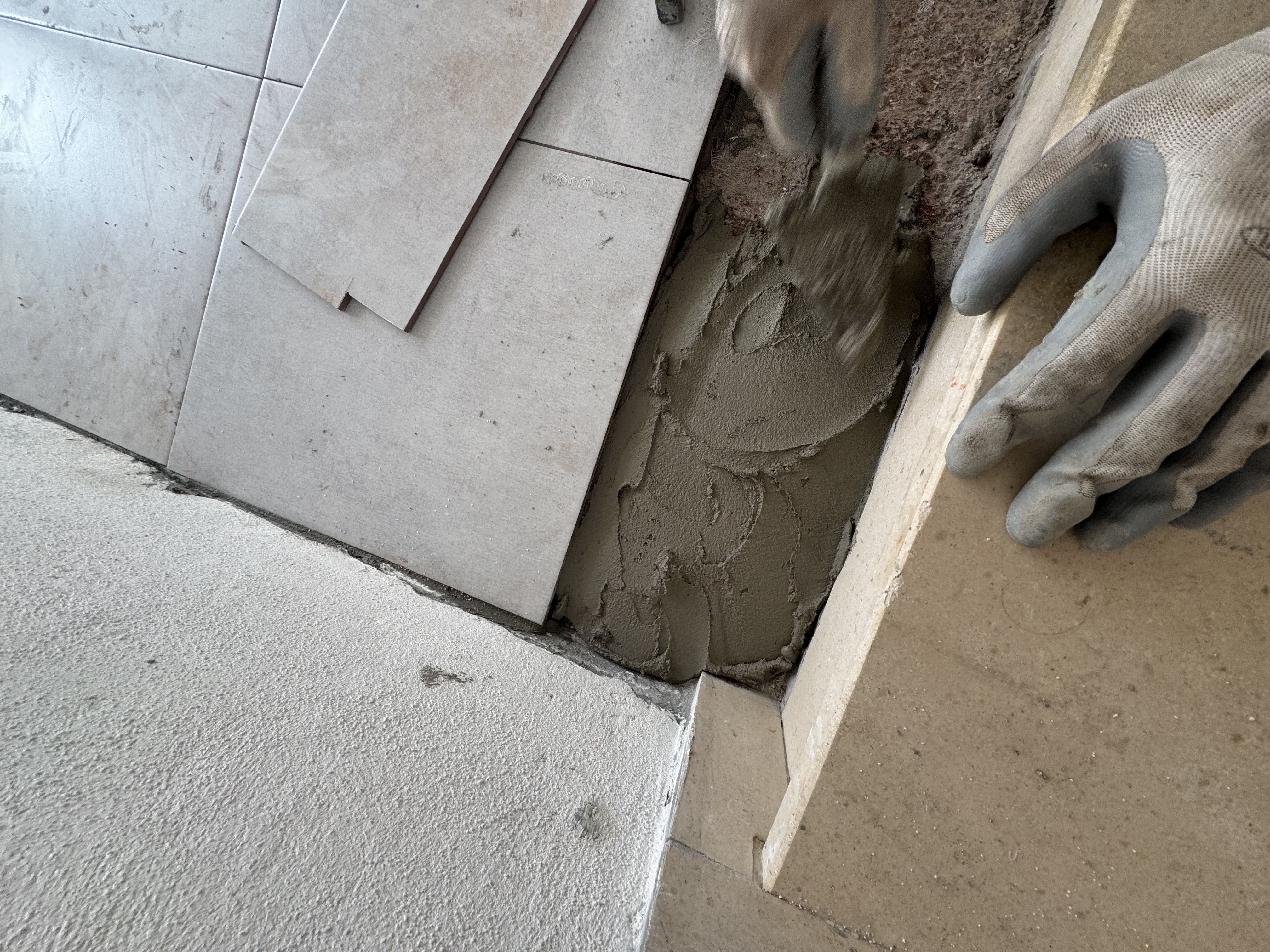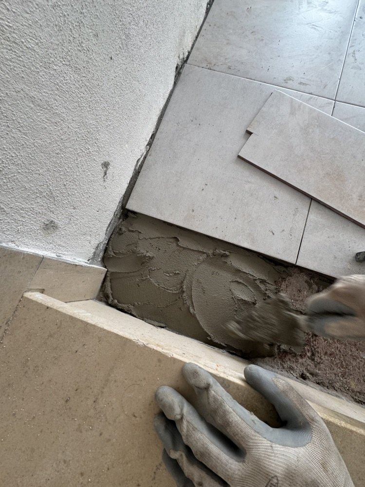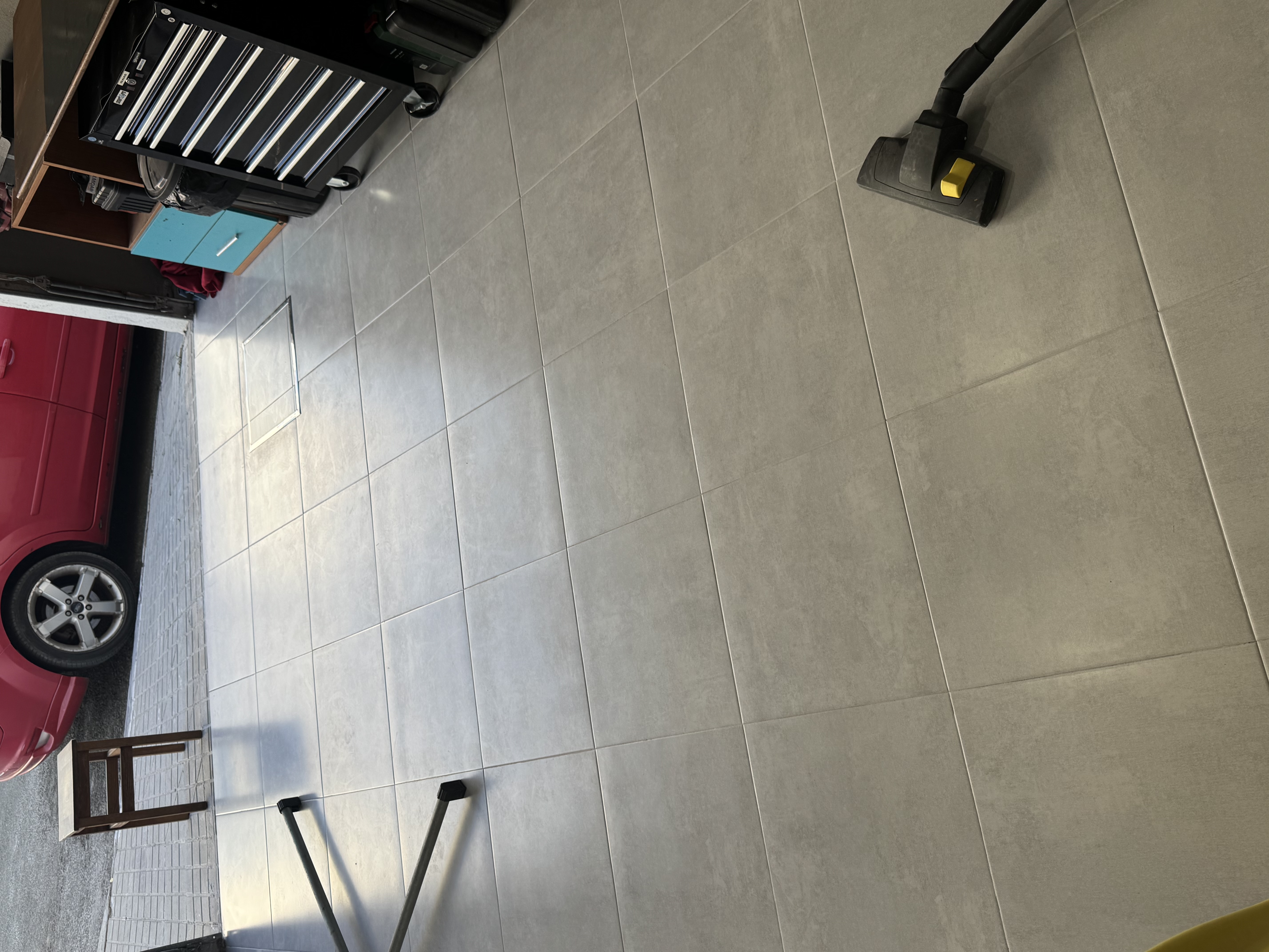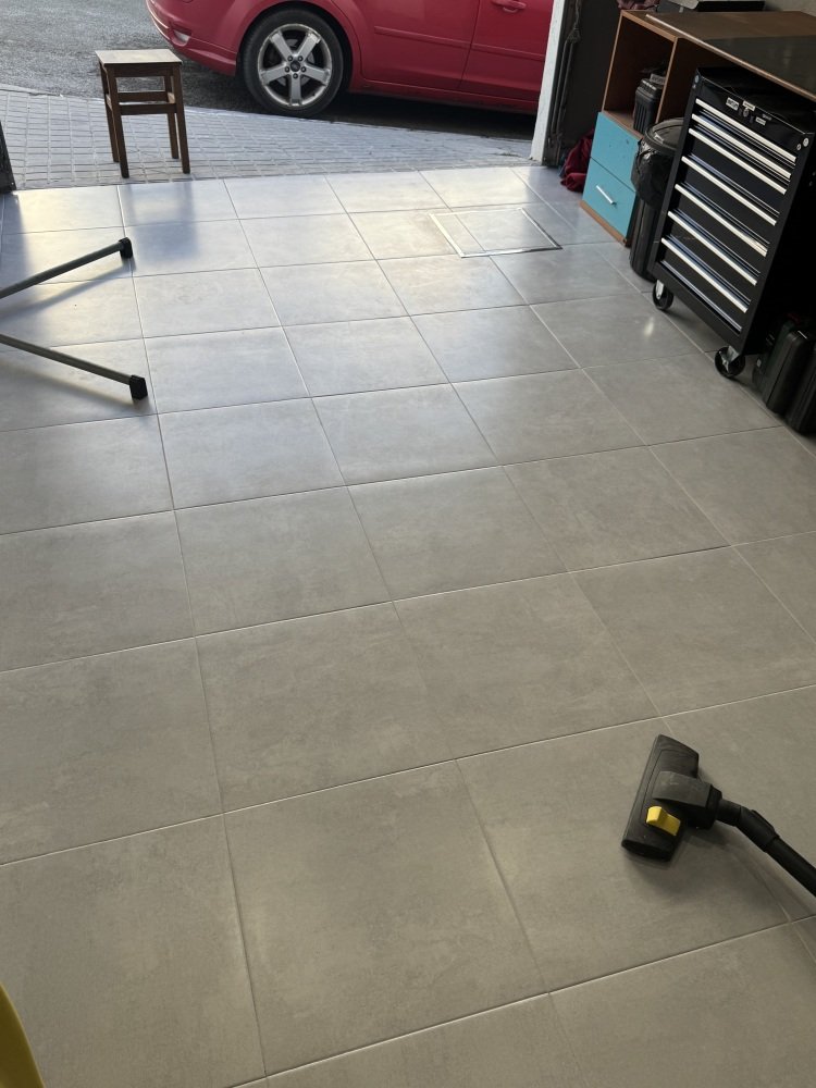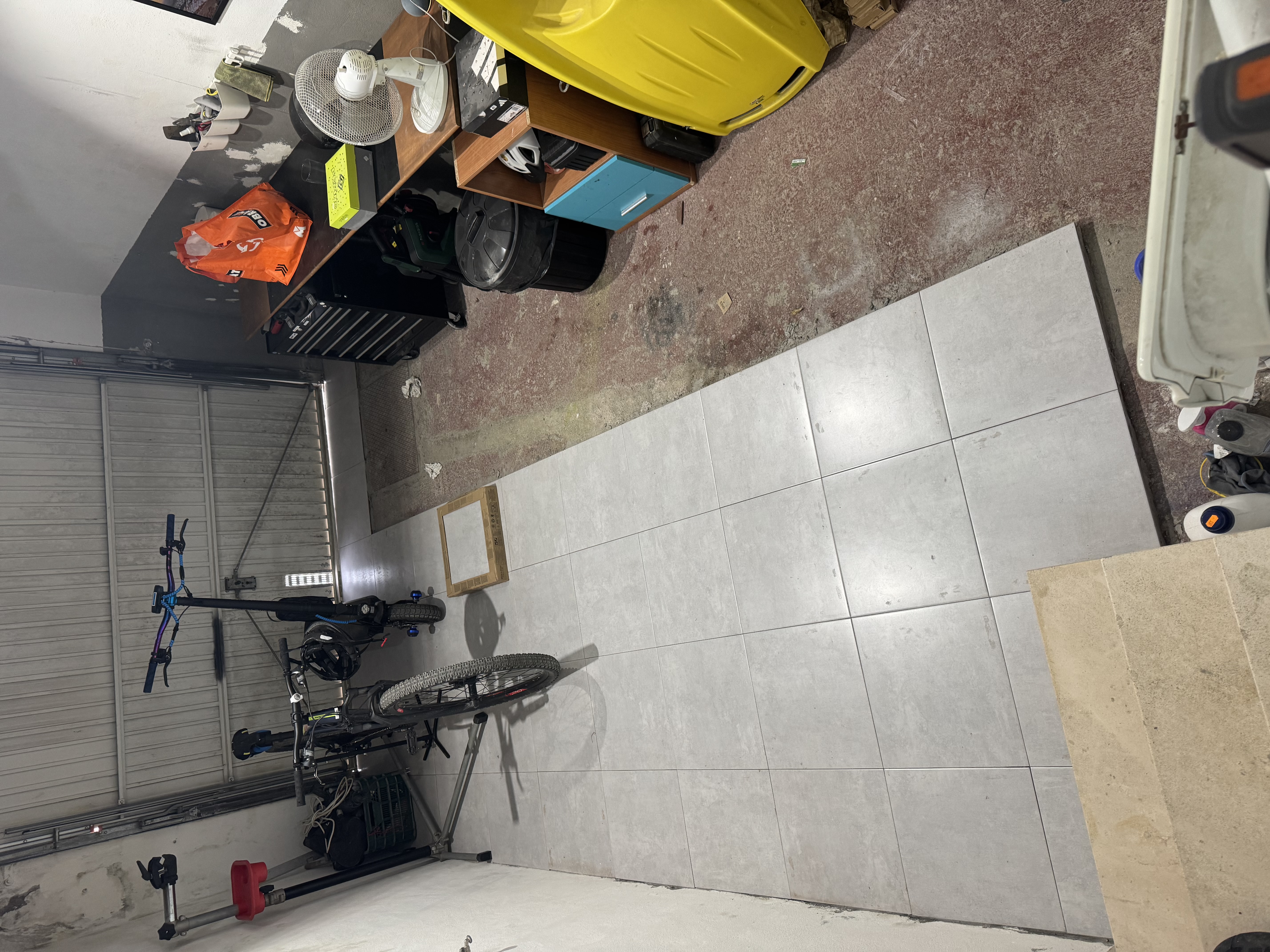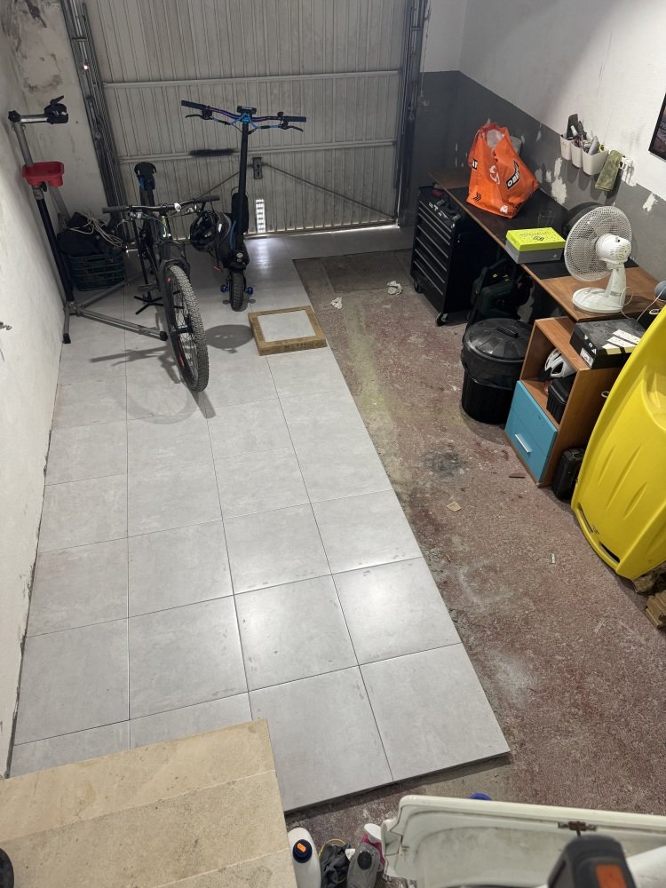Empezamos a enlosar el lado izquierdo de el garaje para cuando se seque subir las cosas del el lado derecho y empezar a enlosar el lado derecho.