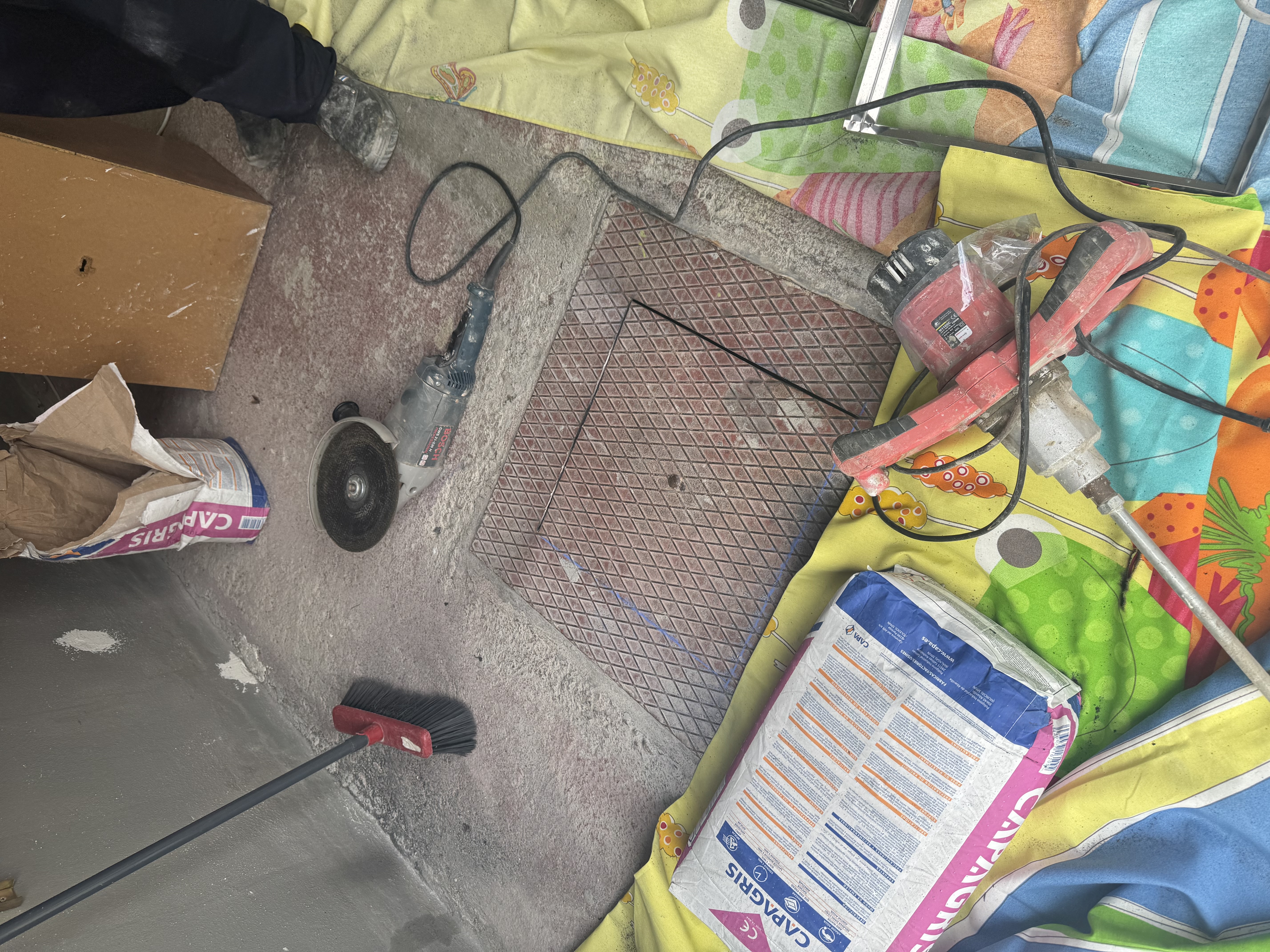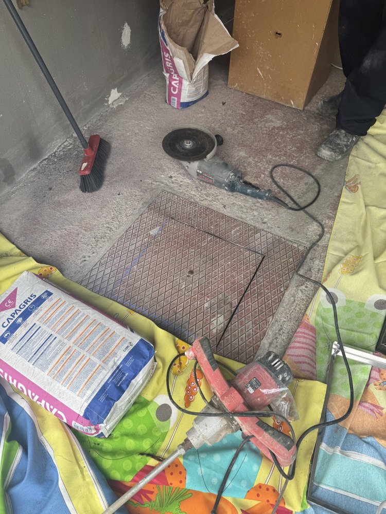 En este paso tuvimos que picar la pared y arreglar una tubería porque perdía agua.