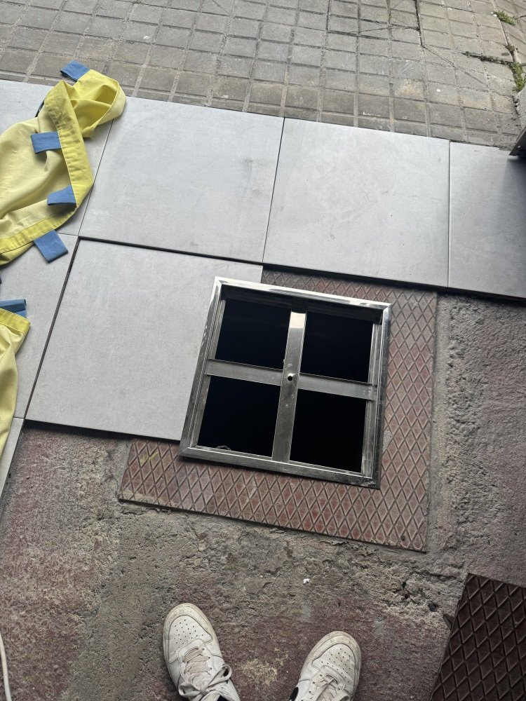 La arqueta que ya tenía la cochera hera muy grande y pusimos una más pequeña con relleno de losas