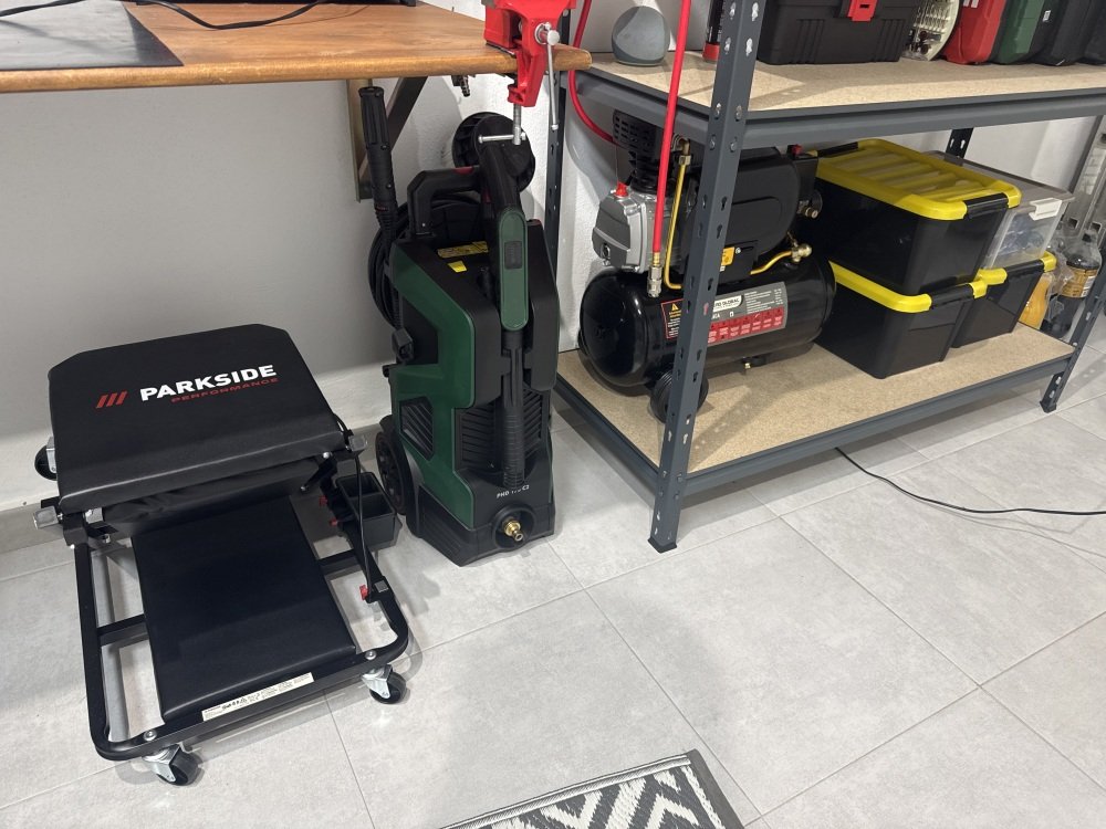 Compré una hidrolavadora, un compresor y un taburete camilla.