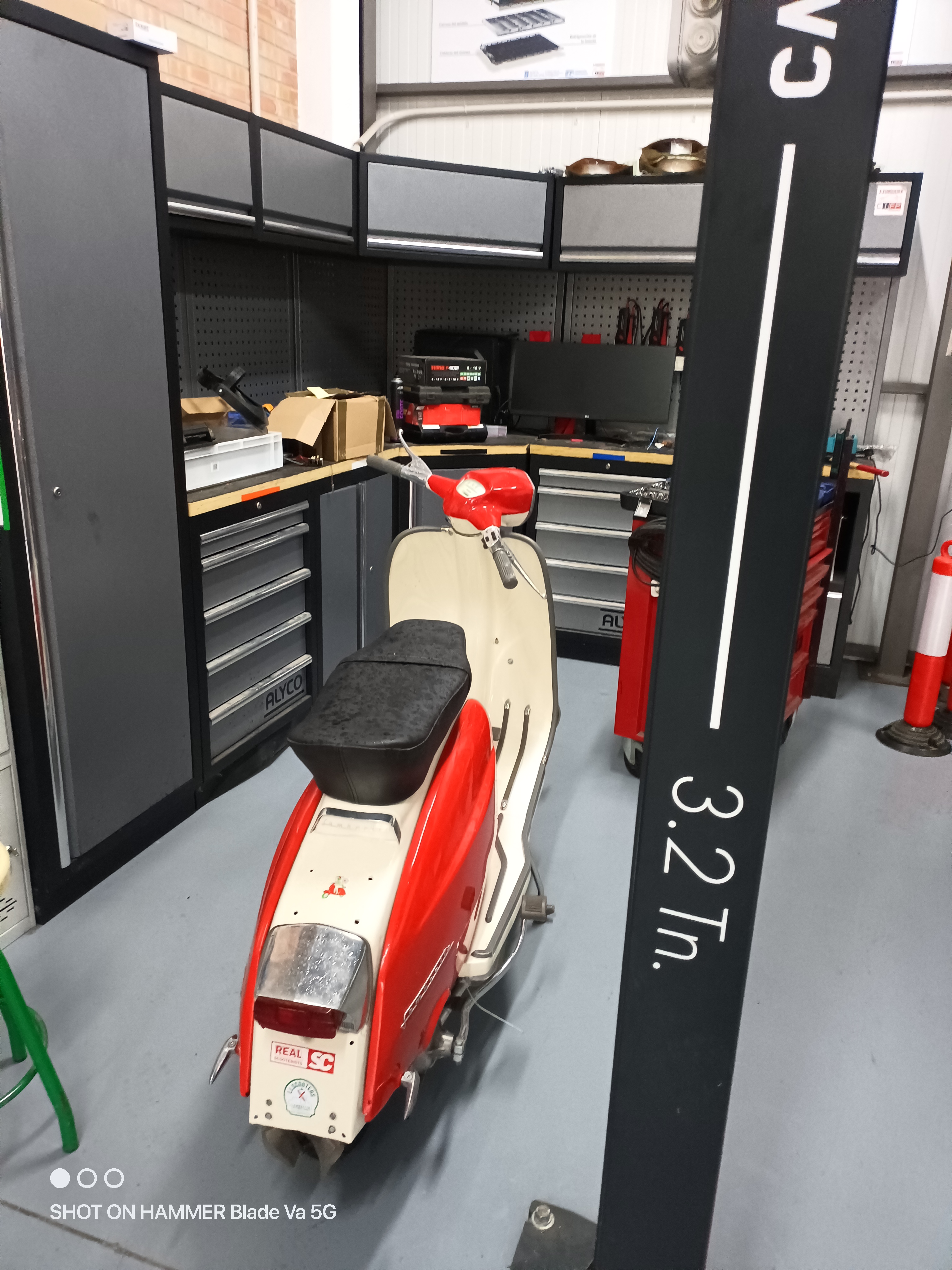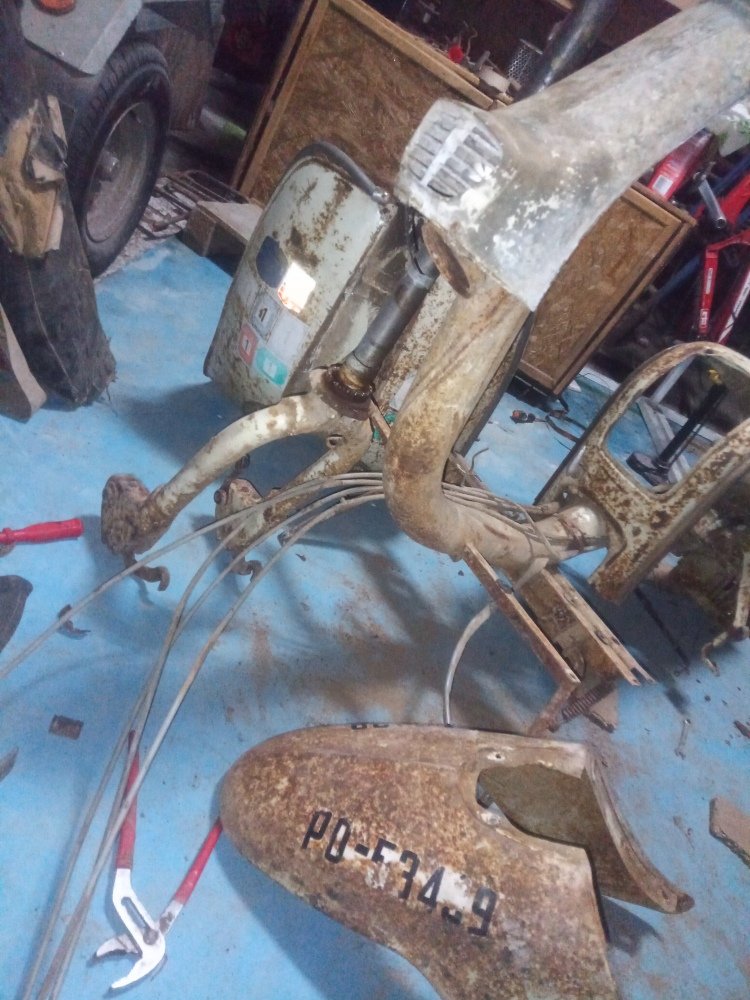 Este proyecto de restauración se dedicó a una moto, se desmonto hasta el último tornillo, siempre usando WD40, se quitó hasta la última mancha de óxido, se cambió la tornillería y se le reconstruyó por completo la mecánica, se pintó y se ensamblo de vuelta, actualmente está en tramitación esperando que realicen una documentación para que pueda volver a circular