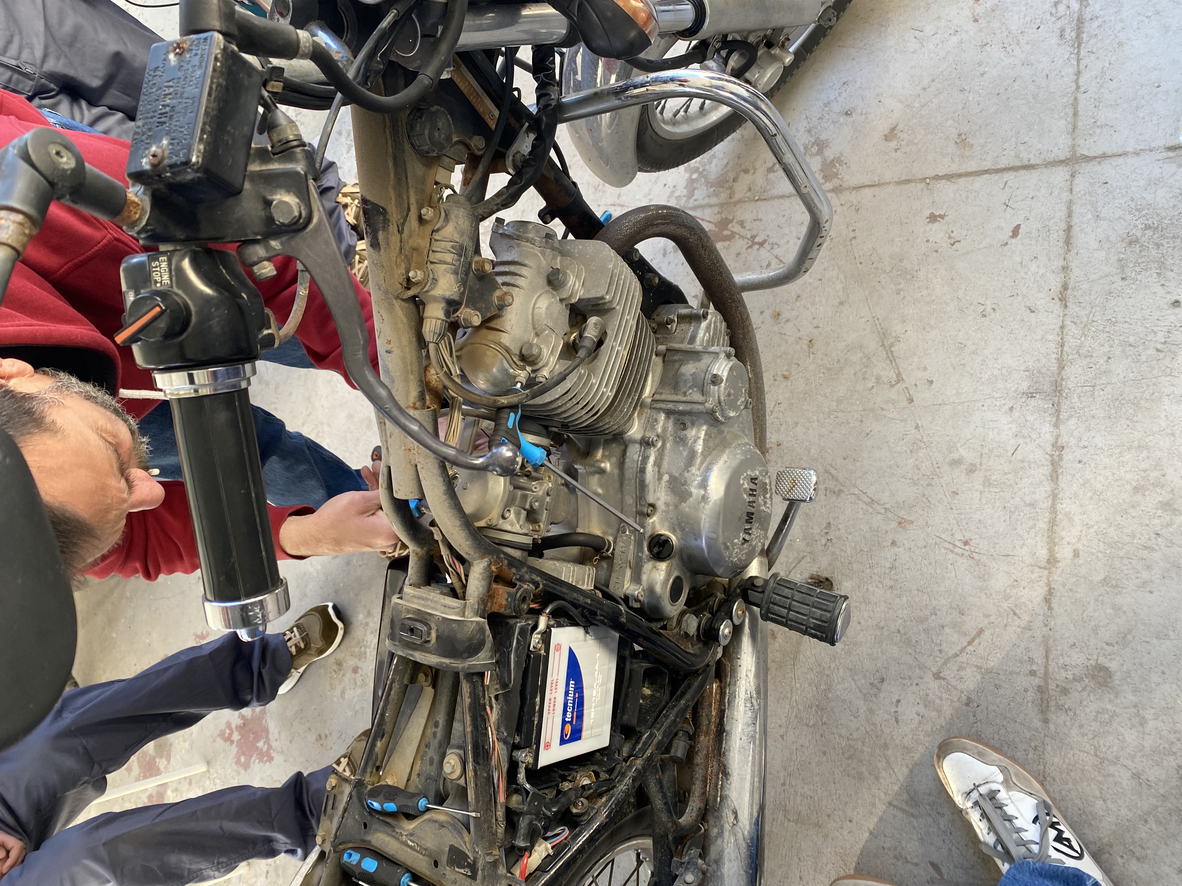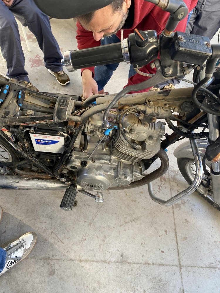 La moto la recogí hace antes del verano llevaba 5 años parada y le tuve que renovar el cableado porque estaba comido por alguna ratilla o algo y no arrancaba, no le iban las luces. Luego cuando conseguí que arrancase se venia abajo parada y tuve que limpiar el deposito y el carburador porque estaban muy sucios. La moto tiene historia es de un amigo argentino que se tuvo que marchar de vuelta argentina y la habia dejado a un amigo que medio que la tenia abandonada en su garaje y quiero con este proyecto devolver le la vida que se merece a esta reliquia del 82 mi idea es dejarla estilo scramberl y que pueda ir por campo con las ruedas de tacos y disfrutarla como se merece