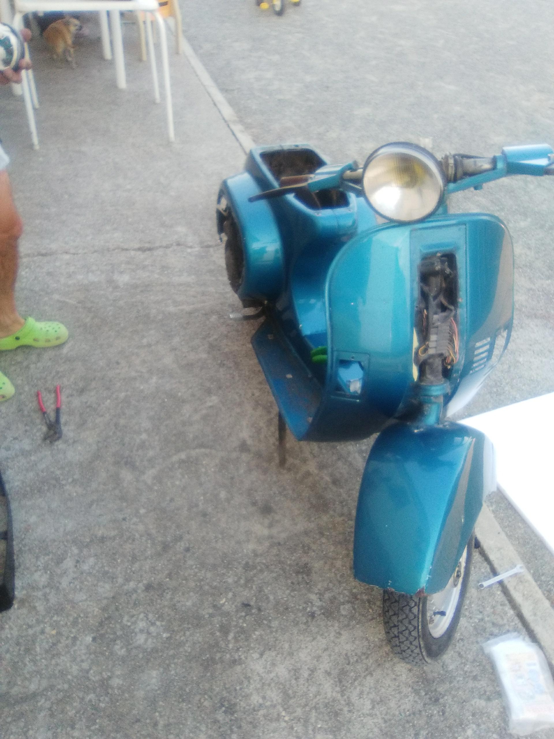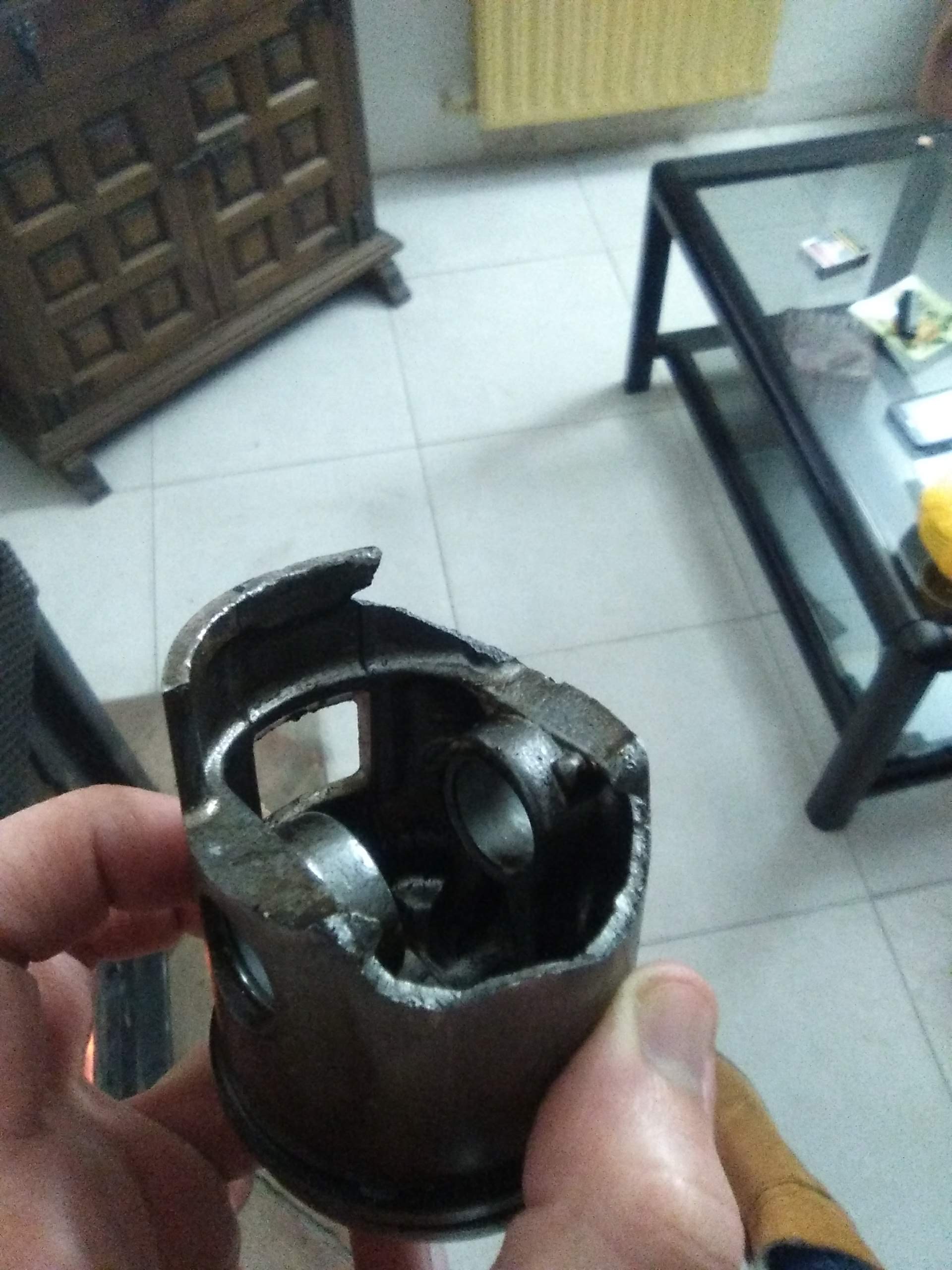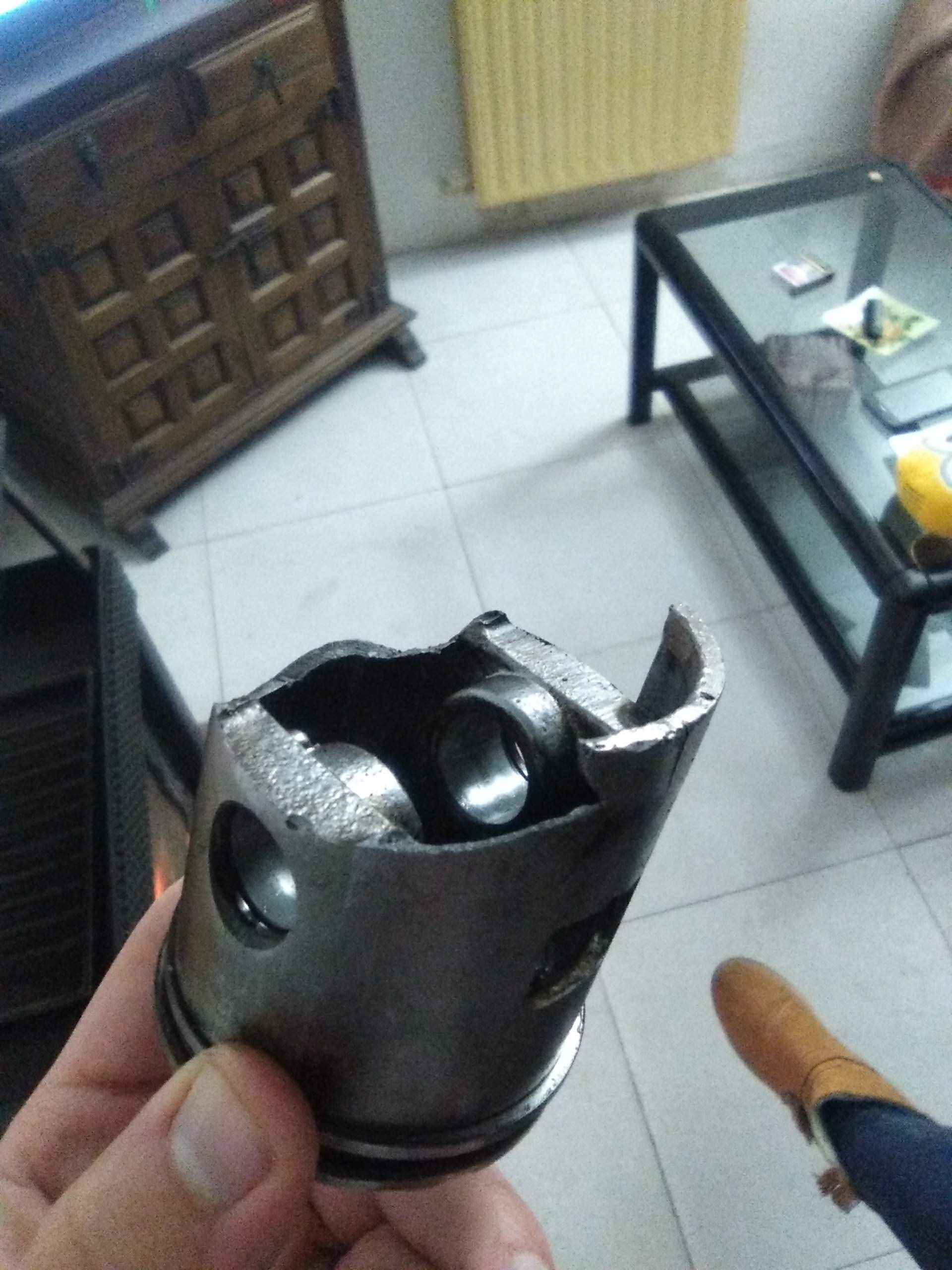 Si hay que ser honesto, siempre pensé en comprar una moto para restaurarla. Cuando compre esta vespa, de primeras quería probarla e inciarme en el mundo y tras un tiempo, empezar poco a poco a restaurar. Como la mayor parte de las veces, las cosas no son como esperas. Pronto empezó a fallar y empecé a ver las mil y una chapuzas que tenía. Poco a poco empecé a tocar carburador, cambiar bujía porque la mayor parte de las veces no arrancaba… hasta que un día de camino al trabajo la moto gripó y se llevó por delante medio motor. En las fotos podéis ver cómo quedó el pistón, que no sufrió un simple rayoncito. Las partes que faltan las podéis imaginar repartidas por el cilindro y demás sitios donde se colaron. Esto me obligó a abrir y restaurar el motor al completo, cambiando cilindro, pistón, carburador (no conseguí hacer que fuese redonda con el que tenía), rodamientos, juntas… Cuando compras una moto veterana estás expuesto a este tipo de cosas, pero en este caso había mucho parche mal resuelto.