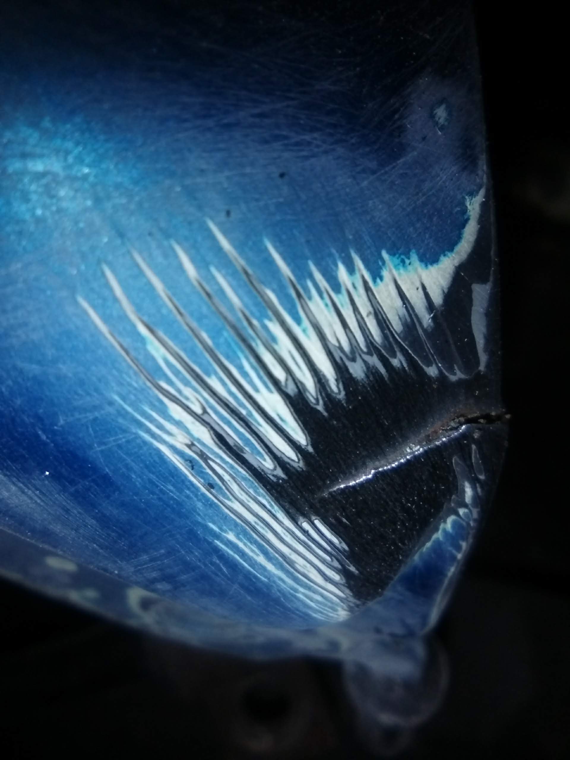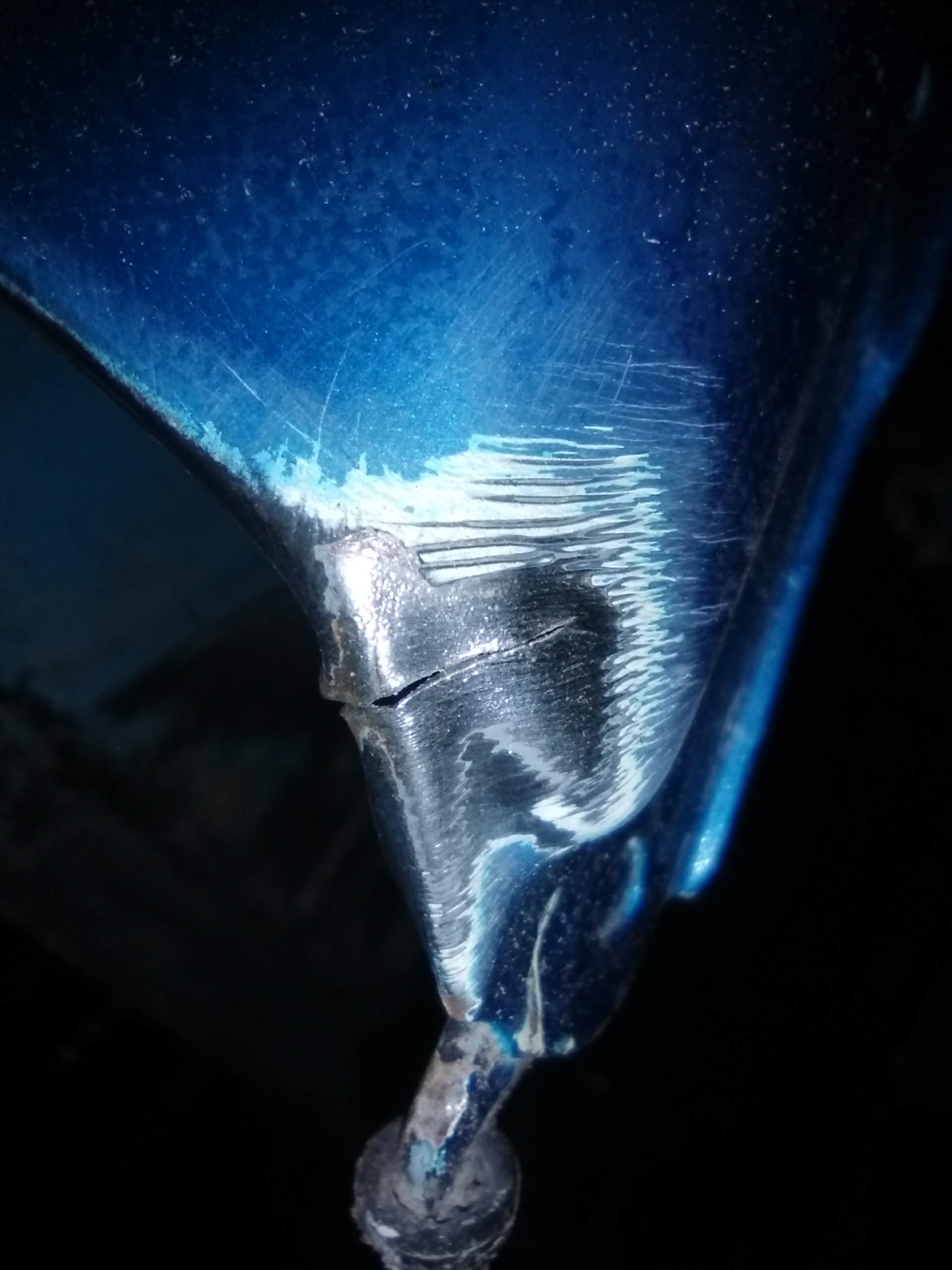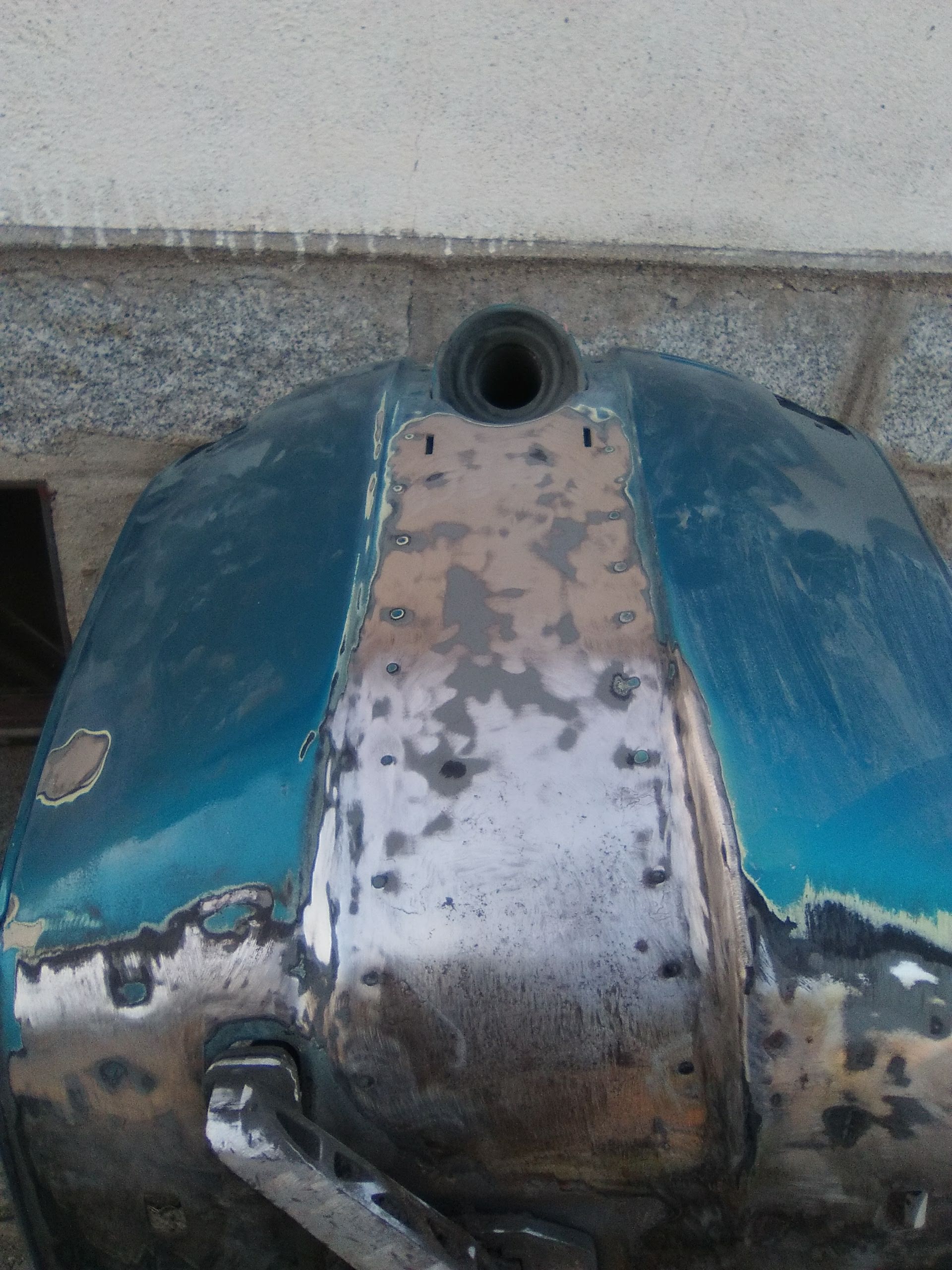 Después de esto, la moto se montó y estuve rodando con ella, más que nada por probar el funcionamiento de los nuevos componentes del motor. Al llegar el verano y tener más tiempo, me decidí a empezar a desmontar para hacer una restauración a fondo. En este paso descubrí que la pintura, aunque en apariencia parecía medianamente sana, escondía muchos secretos. A destacar, aunque eso sí lo había visto, el estado de los bajos, suelo y guardabarros de la moto y algunas grietas que tenía el propio chasis que tuve que soldar. El trabajo de limpieza de óxido por el suelo fue duro, llegando a cada rincón y dejando en chapa viva para que no levantase la nueva capa de imprimación y pintura posterior.