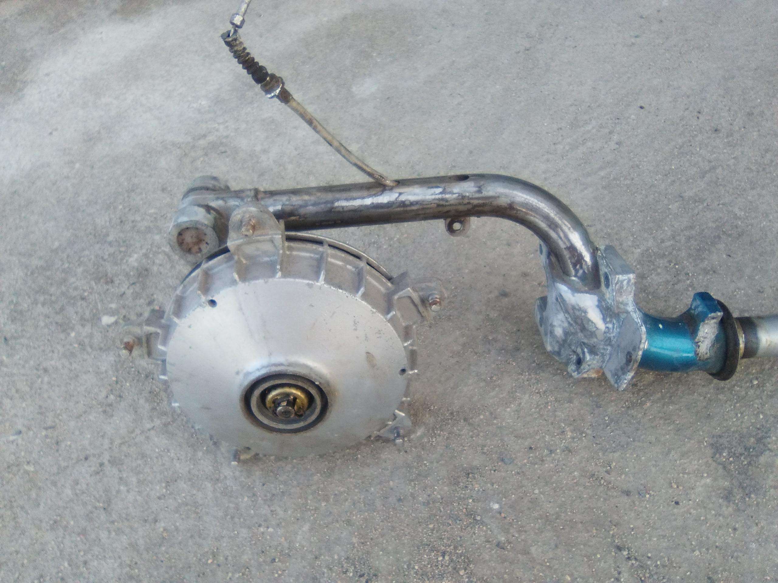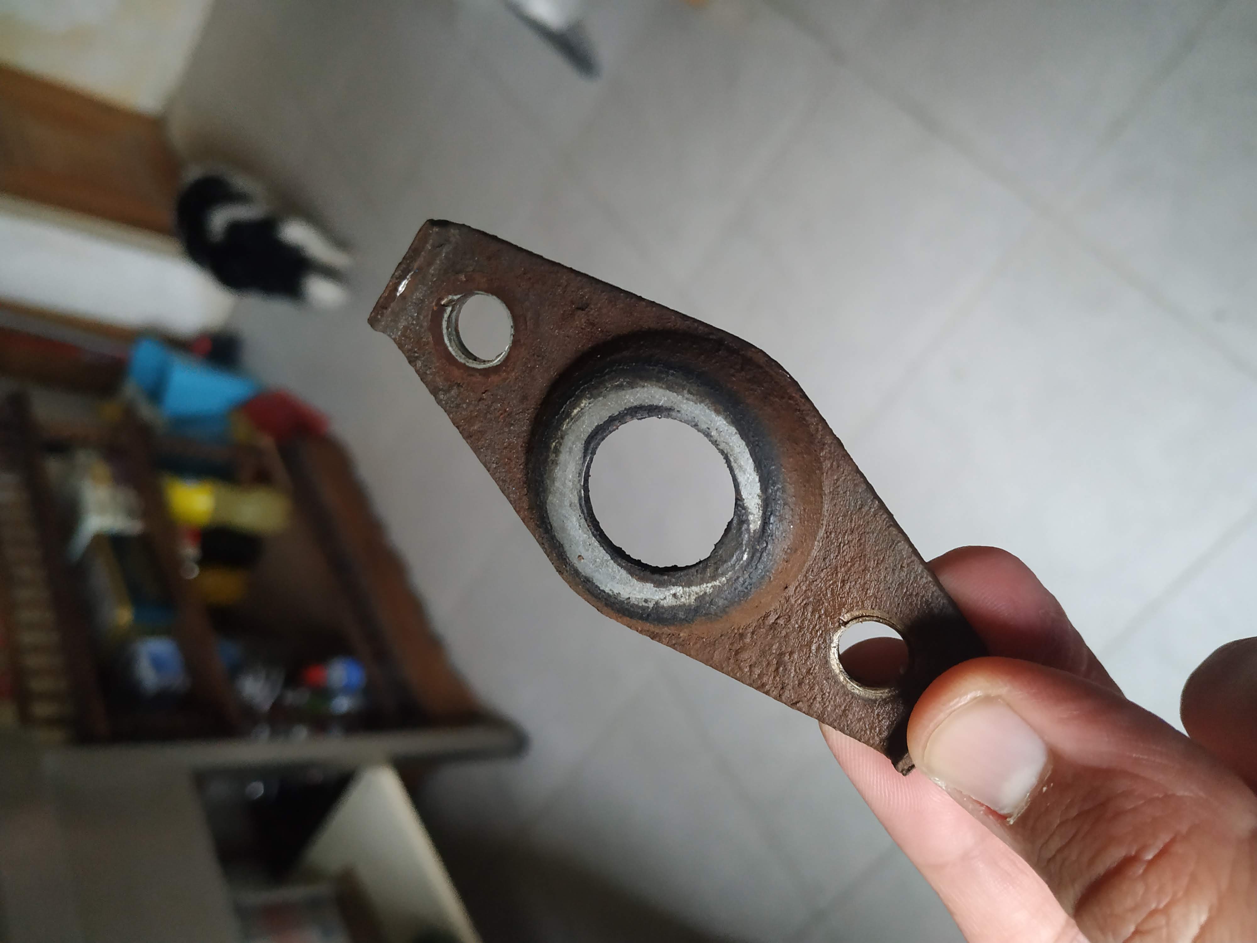 Otra desagradable sorpresa encontré cuando, al desmontar completo el motor y rueda trasera, comprobé que uno de los espárragos que sujetan la llanta estaba taladrado y la llanta se sujetaba con un tornillo de cabeza hexagonal que casi rozaba con el cárter de la moto. Una chapuza que, quien la hizo desde luego pensaba poco en su seguridad. Este trabajo no pude hacerlo yo, por desconocimiento y falta de medios, por lo que se lo tuve que llevar a un tornero que me lo mecanizó y dejó perfecto, casi imperceptible.