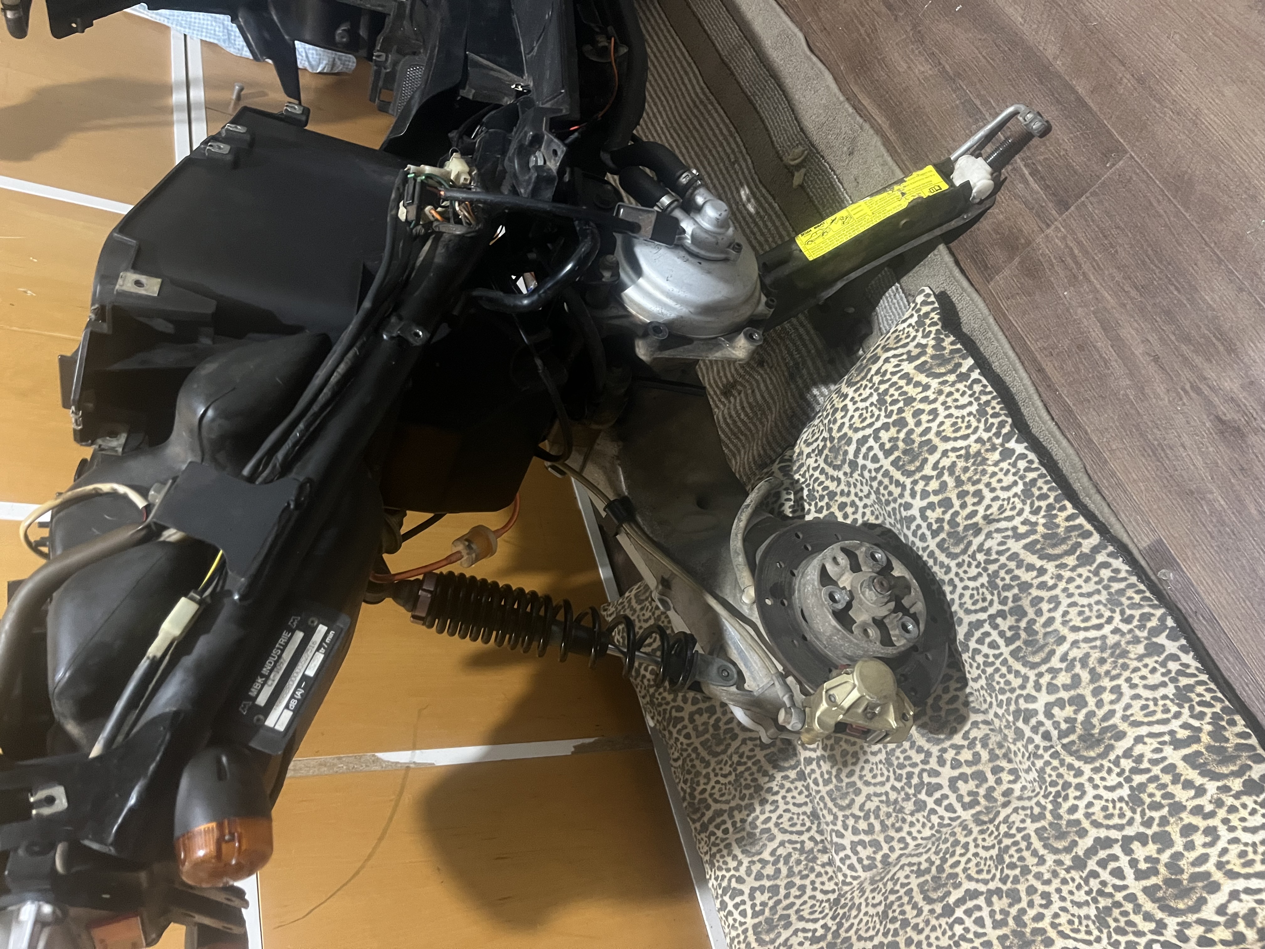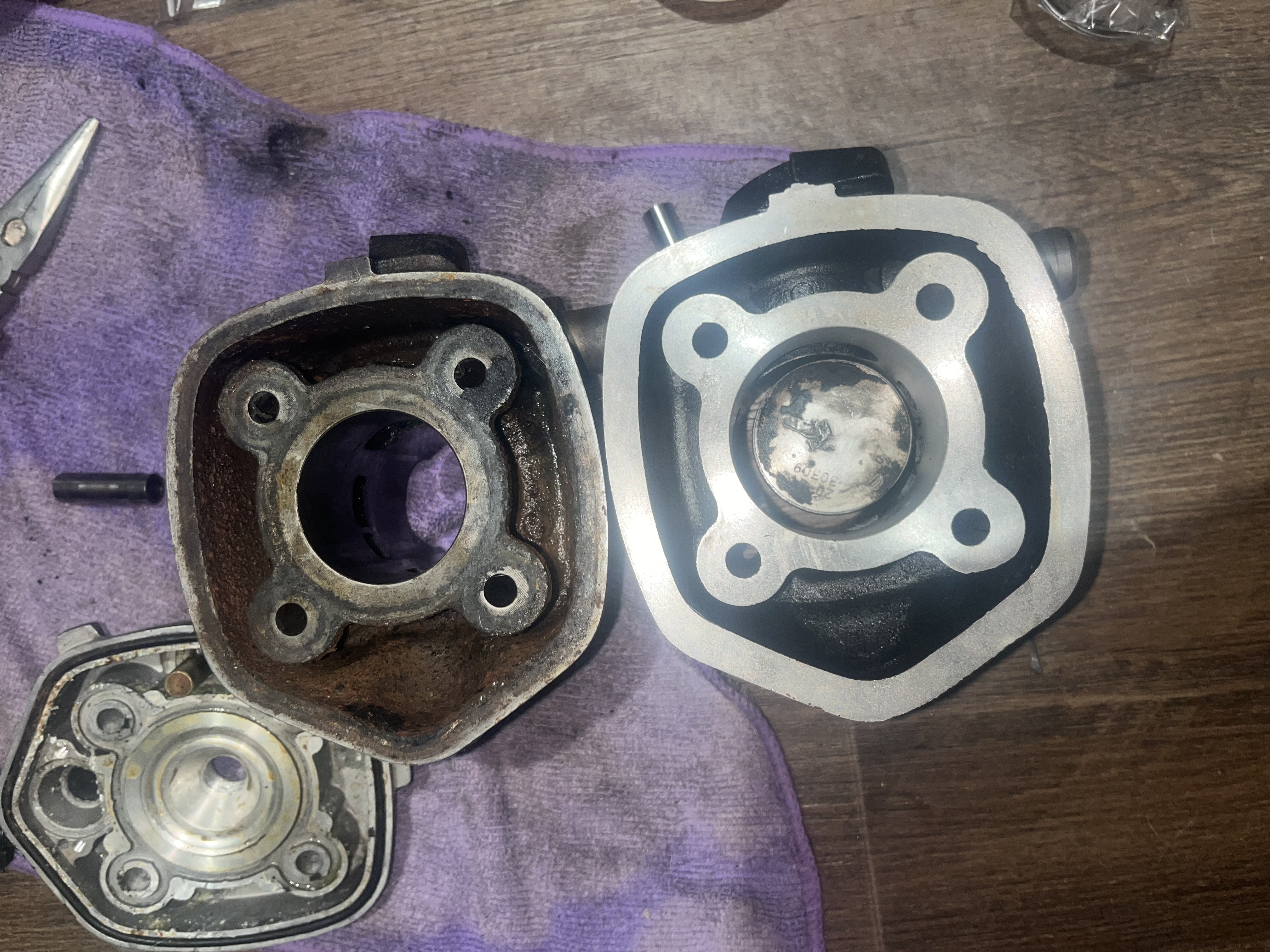 A lo largo del proceso, tuve que sustituir componentes que estaban totalmente inservibles, como el cilindro, pistón, cigüeñal, juntas, carburador, encendido y cables, variador, correa y embrague. También renové los neumáticos y las llantas, que se habían deformado tras tanto tiempo parada.